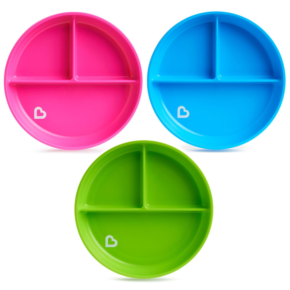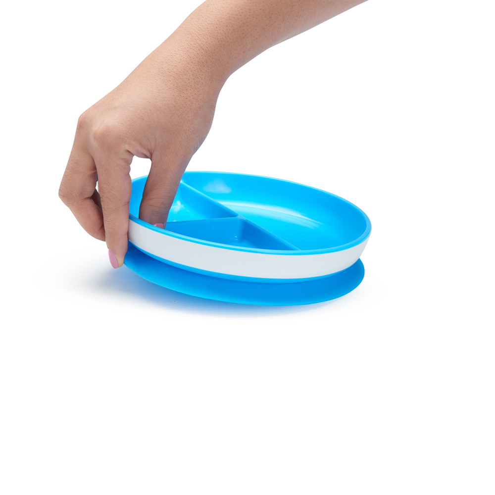 A Munchkin tapadókorongos rekeszes tányér segítségével egy kis rendszerezettséget vihetsz a baba önálló evési próbálkozásaiba. A három különbözõ rekeszben három különféle ételt tudsz szépen elkülönítve tálalva. A tányér erõs tapadókorongja a legtöbb, sík felületen megtapad, a gyorskioldó fül pedig megkönnyíti a felnõttek számára az eltávolítást.