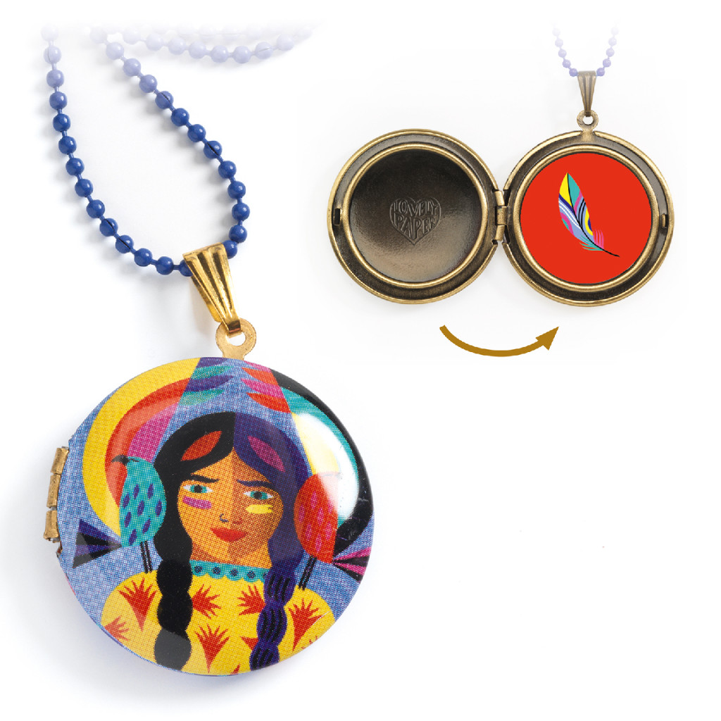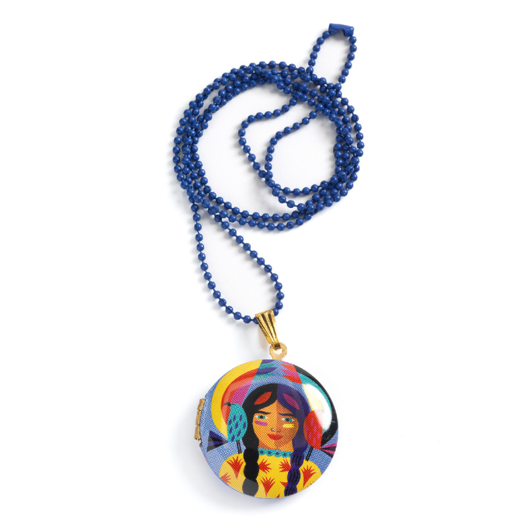 Dekoratív, gyermek nyaklánc fémből, kinyitható totem mintás medállal.