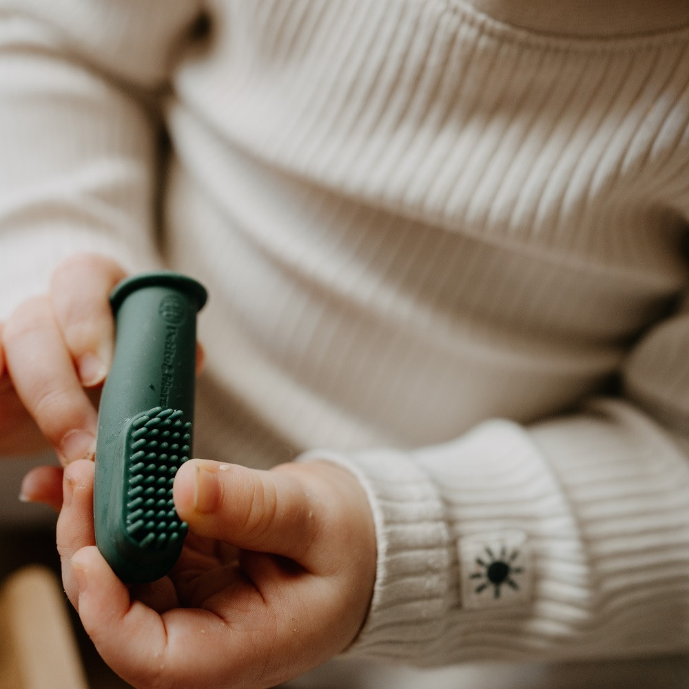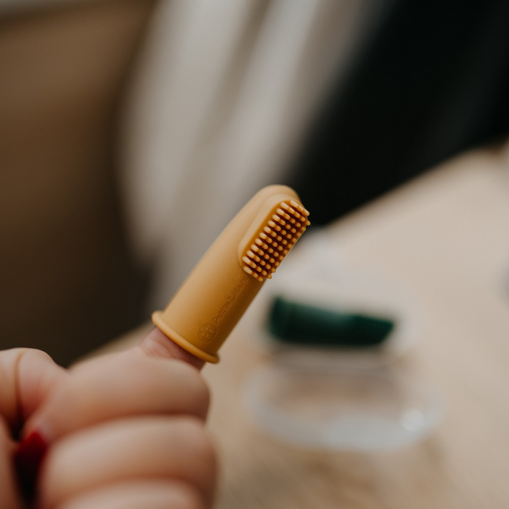 PETITE&MARS Szilikon ujjra húzható fogkefe szett Ochre&Green 2 db 0m+