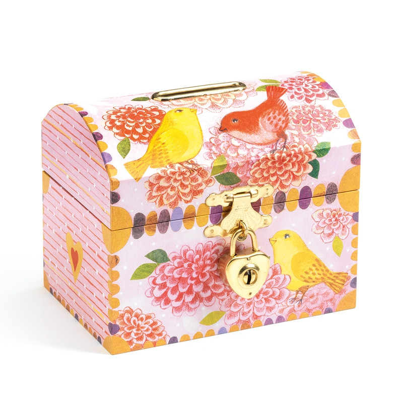 Szép dekoratív tárgy, olyan, mint egy valódi kincsesdoboz. A doboz tetején nyílás van, amelybe egyenként becsúsztathatóak a megtakarított érmék. Fémszegéllyel ellátott nyílás, hogy a pénzes dobozon a nyílás ne sérüljön meg a sok-sok beledobott fémpénz surlódásától. A lakattal lezárt perselynek két kulcsa van.