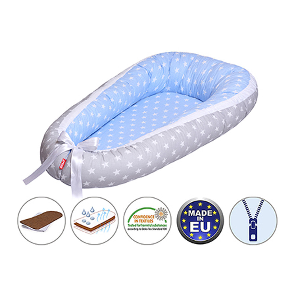 Scamp babafészek kókuszbetétes Blue Grey Stars BF005