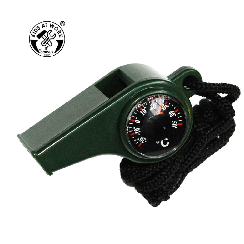 Síp, hőmérővel és iránytűvel.