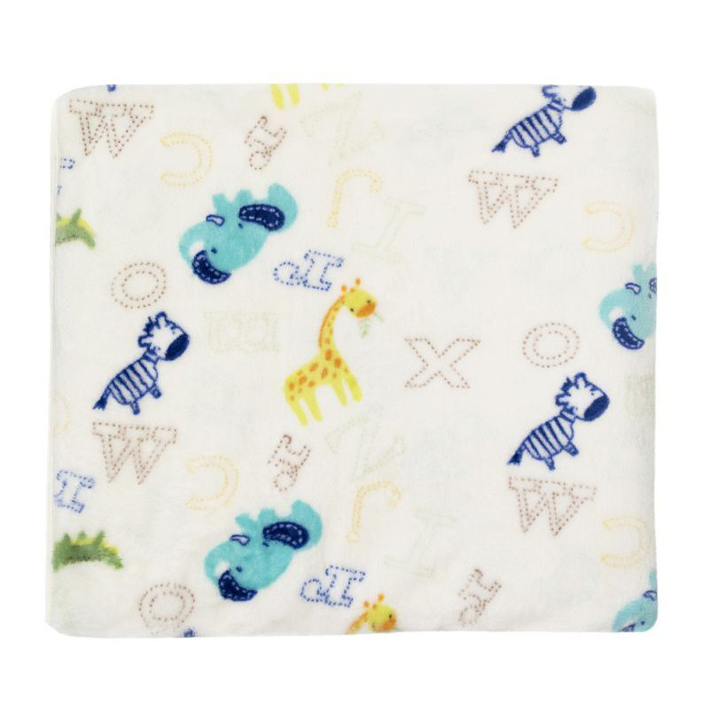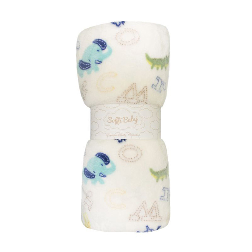Soffi Baby takaró plüss dupla krém kék-elefánt 75x100cm