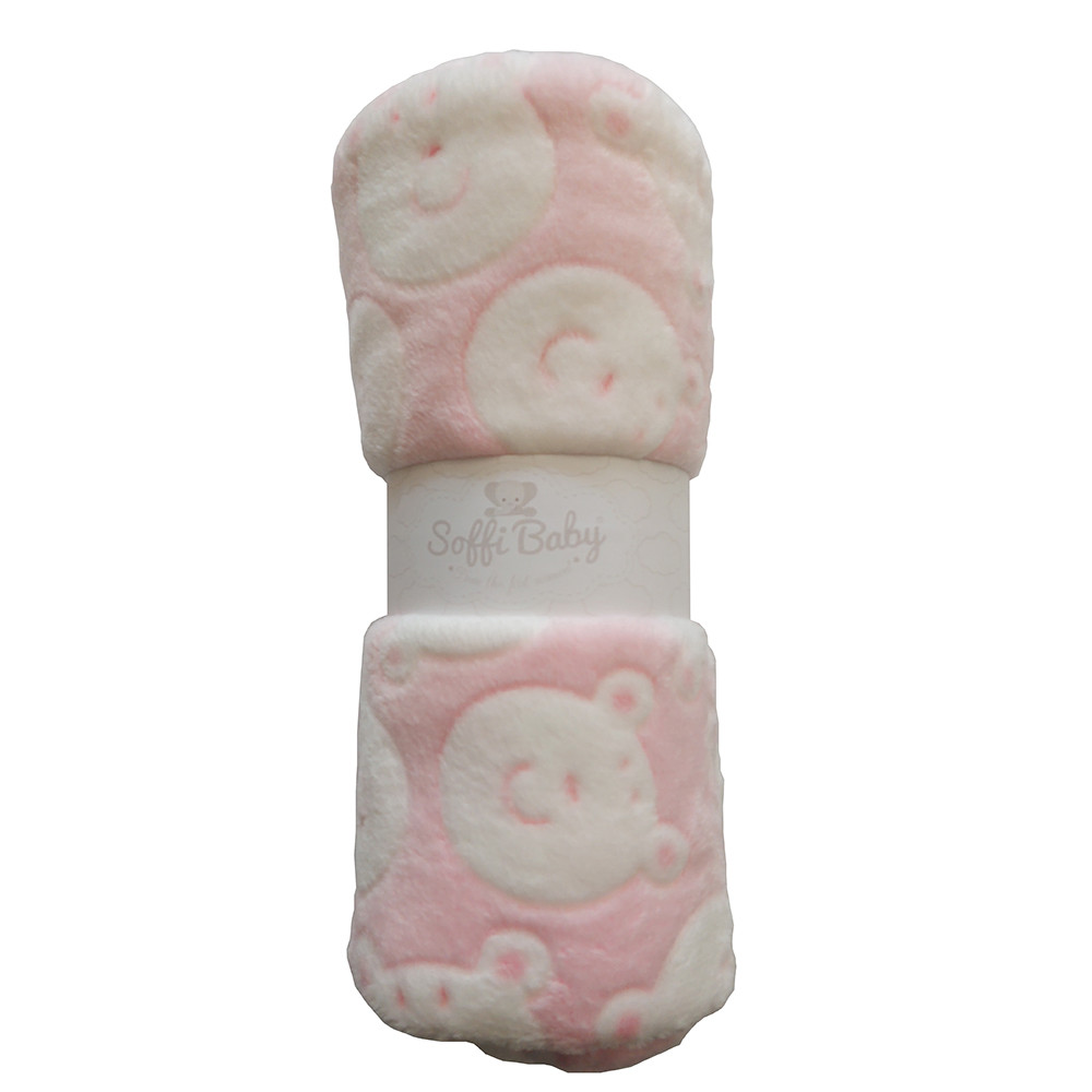 Soffi Baby takaró plüss dupla rózsaszín fehér macipofi 75x100cm