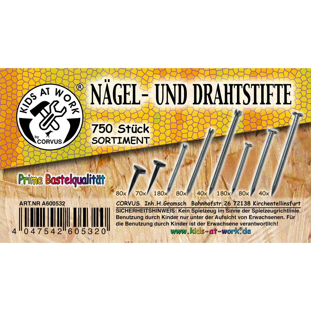A készletben 750 db szeg található egy praktikus szortírozó dobozban.