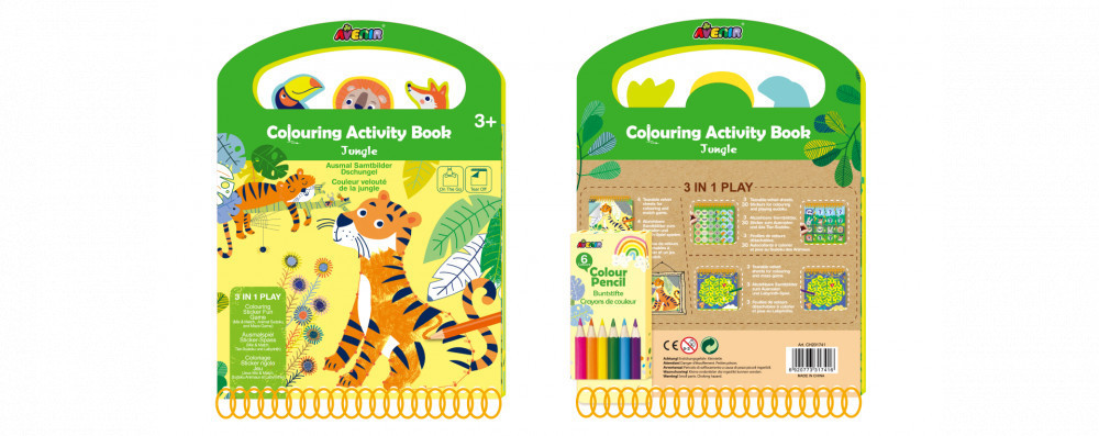 Színező könyv fejlesztő feladatokkal, 6 db színes ceruzával Avenir