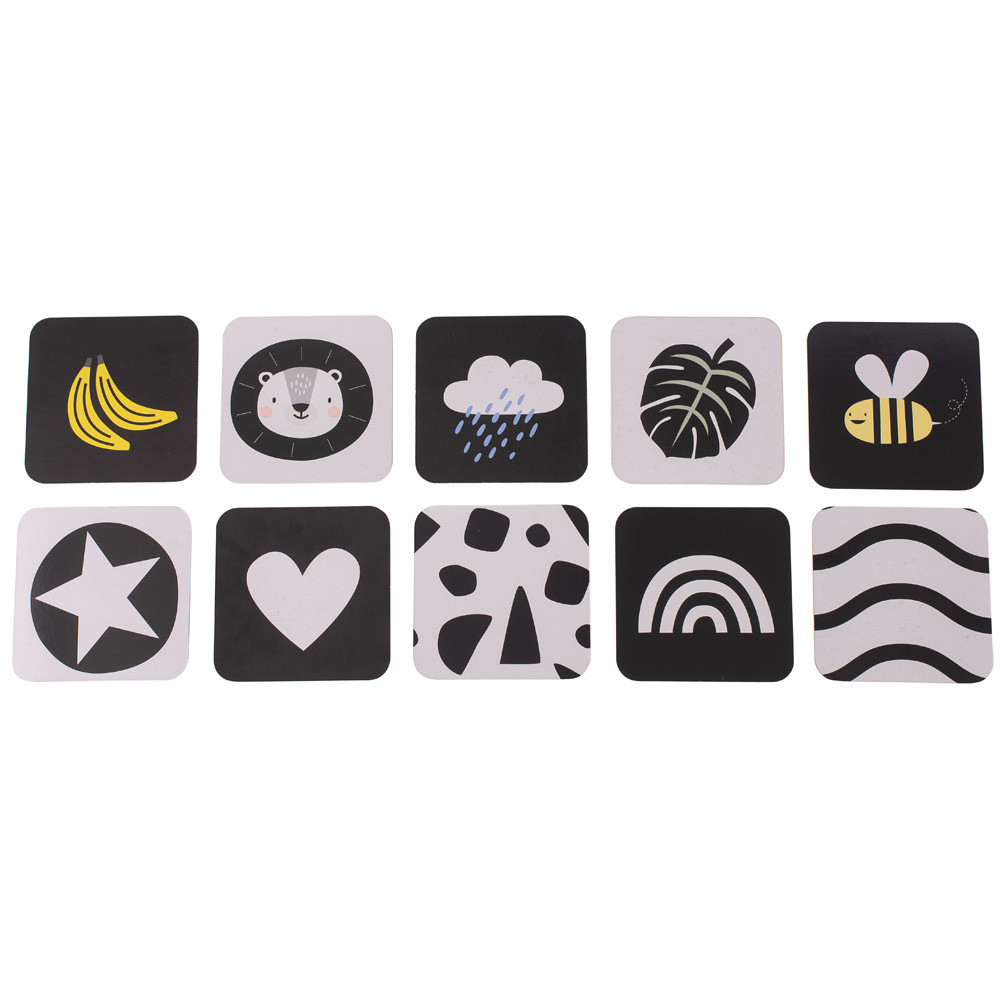 A baba oktatásának leghatékonyabb módja, ha olyan fogalmakat ismertetünk meg, amelyek érdeklik őket, mint például a színek, játékok, ennivalók, virágok, állatok vagy szokatlan minták és formák.Ebben segít ez a 30 képből álló készlet, bababiztos tükör és 2 kártyatartó állvány. A kártyákon Savannah gyűjteményünk gyönyörű illusztrációi láthatók.A készlet a babával együtt nő, 3 fejlődési szakaszt támogat.Használja az egyedi műanyag kártyatartókat a kártyák függőleges helyzetének és a bababiztos tükörnek a megtámasztására a játékhoz és oktatáshoz. Cserélje ki a kártyákat, amikor a baba csökkenő érdeklődést mutat iránta. Használja naponta legalább háromszor, körülbelül 10 napig, majd váltson új kártyatémára. Ezek a témakörök önkiváncsiságot és tanulási motivációt váltanak ki. A kártyák használata segít összekapcsolni a teremtést az agyban, és serkenti a tárgyak azonosítását, erősíti a memorizálást, fejleszti a finom motoros készségeket, javítja a vizuális memóriát és növeli az önbizalmat.Illusztrált kártyáink már az első naptól kezdik fejleszteni a baba vizuális észlelését.A 3 fejlődési szakasz támogatása:1. szakasz – 0 hó: A nagy kontrasztú színkártyák lehetővé teszik, hogy a baba egyszerre csak egy képre fókuszáljon, és optimalizálja a stimulációt. Tökéletes a fej elfordítására vagy a hasi gyakorlatokra.2. szakasz – 3 hó: Gazdag színek és egy bababiztos tükör segíti a baba vizuális észlelésének fejlesztését.3. szakasz – 12 hó: Határozza meg a számokat és a mennyiséget.- 15 db kétoldalas kártyakészlet (30 kép – a különböző témákat a babák különböző életkorú látásfejlődési jellemzői alapján terveztük meg.)- bababiztos tükör- 2 egyedi kártyaállvány.Kétoldalas, matt felületű fóliát használunk tükröződésgátló kezelésként a babák szemének védelmére, beleértve a gyermekbarát lekerekített sarkokat is. Környezetbarát szójafestékkel nyomtatva, szag nélkül. BPA-mentes, PVC-mentes, ftalátmentes.Mérete: 13,5x13,5 cm / 5,5”x5,5”Tökéletes játék újszülöttnek 36 hónapos korig.https://youtu.be/rfjfGAQ0bcU