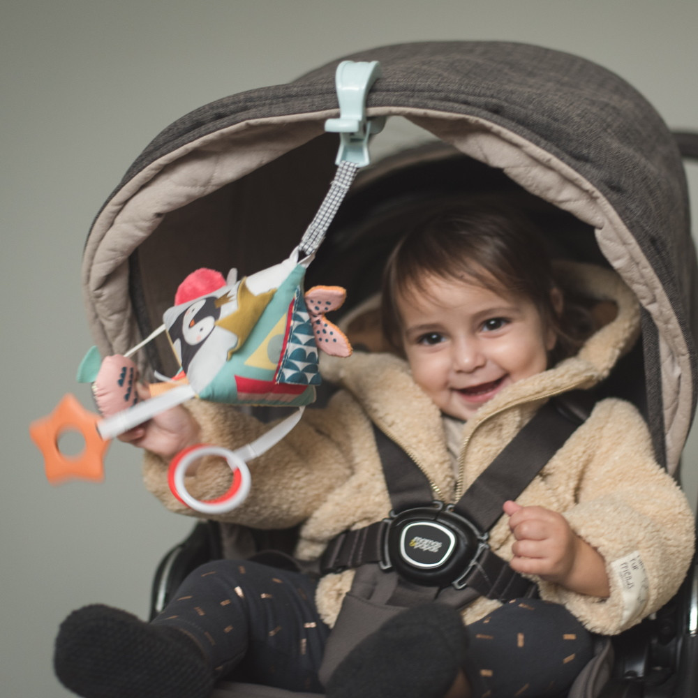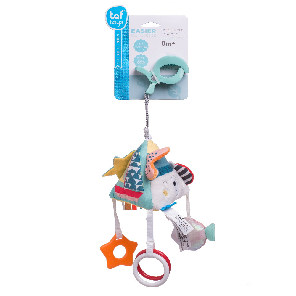 Taf Toys készségfejlesztő piramis North Pole - 3 hónapos kortól ajánlott. Puha piramis kellemes harangozó hanggal, bababiztos tükörrel, rágókával, műanyag gyűrűkkel és színes szalagdarabokkal, fényes nyomattal, különböző textúrájú anyagokkal, zizegő részekkel. Csatjával könnyen felakasztható a legtöbb hordozó karjára és babakocsira. A csatja levehető, anélkül a gyermek kezébe is adható a játék. Kérjük, távolítson el minden csomagolást és zsinórt használat előtt. Szín és tartalom változhat. Tisztítás: csak a külső borítása tisztítható puha nedves ruhával. Anyaga: poliészter, ABS, EVA, műanyag merevítő.A Taf Toysnál megértjük, hogy a megfelelő fejlesztő játék kiválasztása gyermeked számára komoly döntés. A Taf Toys széles termékskálája olyan fejlesztő játékokat kínál, amelyek megfelelnek a baba életkorának, és kihívást jelentenek, szórakoztatóak és inspirálják a képzeletet. Minden játékunk azzal a szándékkal készült, hogy elősegítse a baba érzelmi, kognitív és fizikai fejlődését a növekedés első két évében. Célunk, hogy segítsünk babádnak megalapozni az egészséges és boldog fejlődési utat.