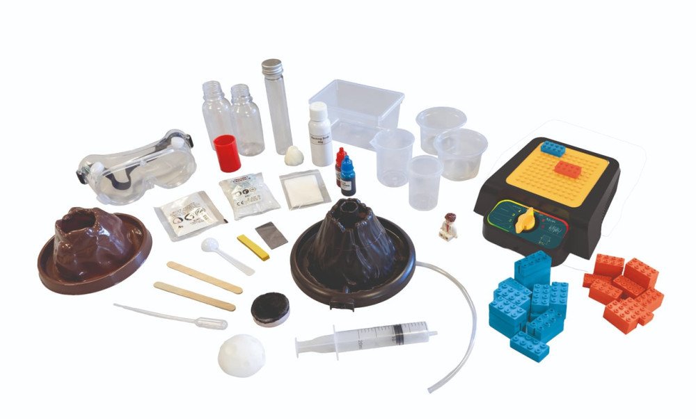 • A készlet tartalma: Vulkánmodell építőelemek, földrengés szimulátor, tornádó készítő eszköz, kísérleti útmutató