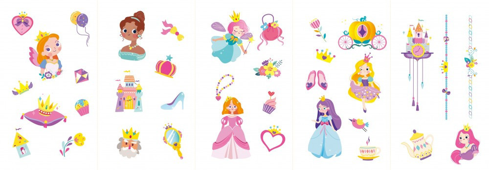 • Csomag tartalma: Több mint 100 különböző hercegnős tetováló és körömmatrica