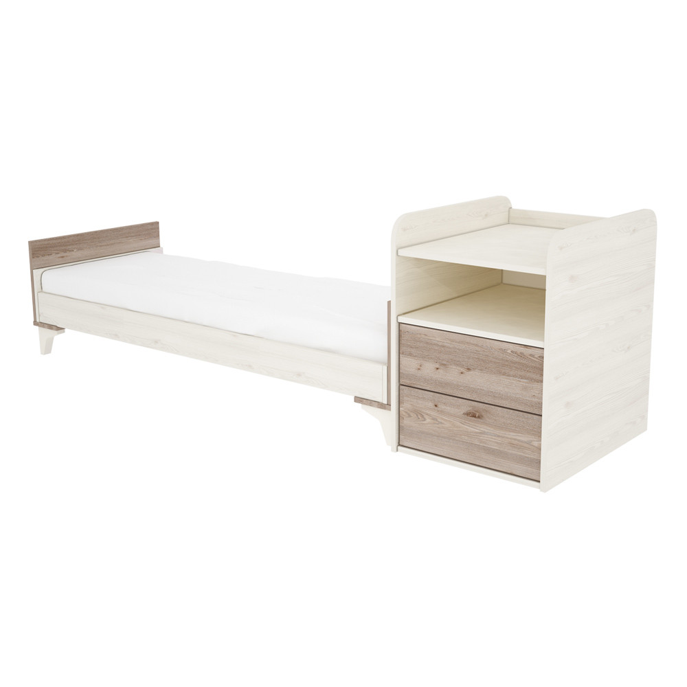 pelenkázószekrény leemelésével, egy ifjúsági heverõt és egy éjjeli szekrényt kapunk. A kiságy könnyedén átalakítható, nincs szükség pótalkatrészek megvásárlására, ezek a termékkel együtt járnak.