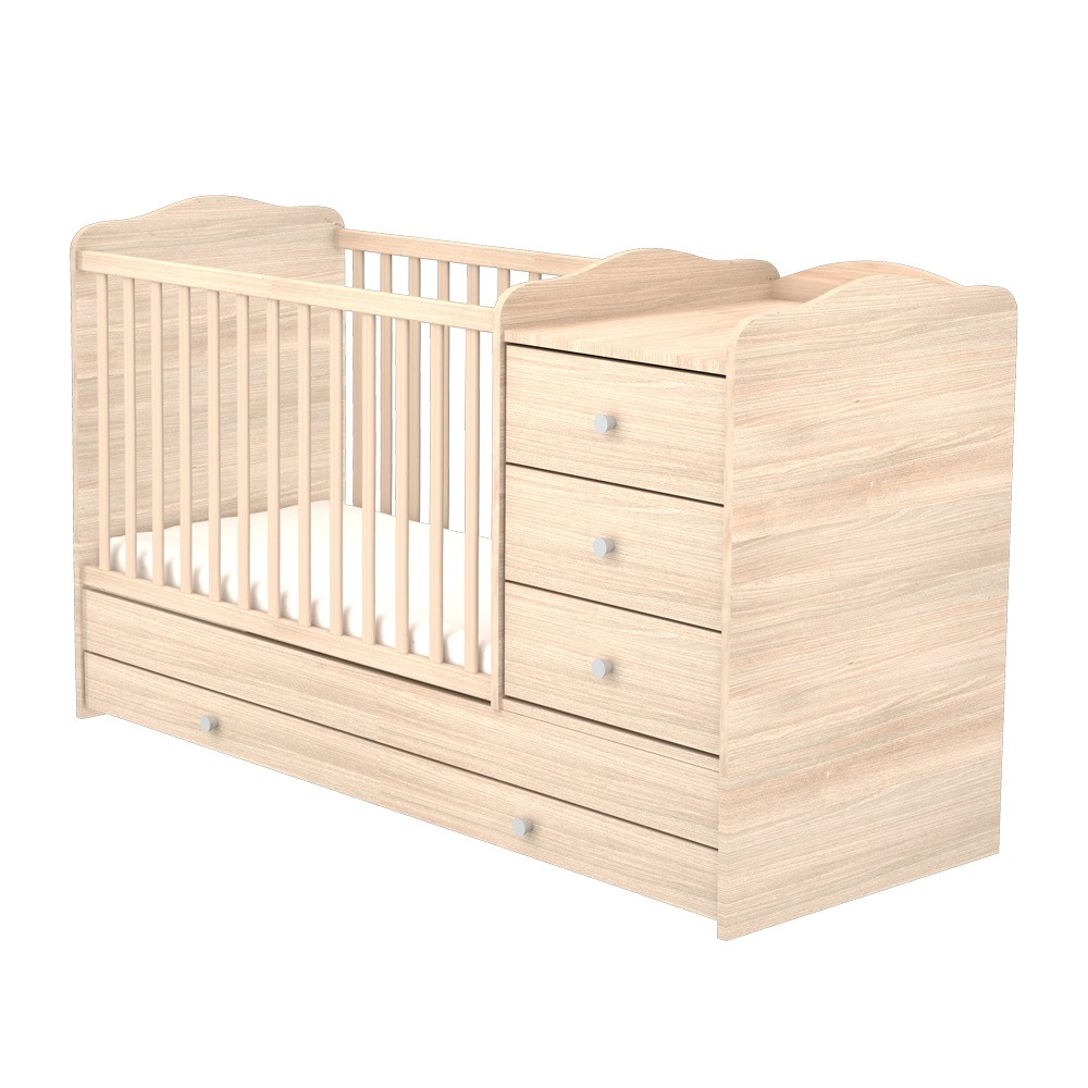 Kombinált kiságyunk megfelelõ választás kisebb babaszobák berendezése során, hiszen egyszerre kombinálja a klasszikus rácsos kiságyat a pelenkázószekrénnyel, ám jóval kisebb helyet elfoglalva, mint a két bútordarab külön-külön.