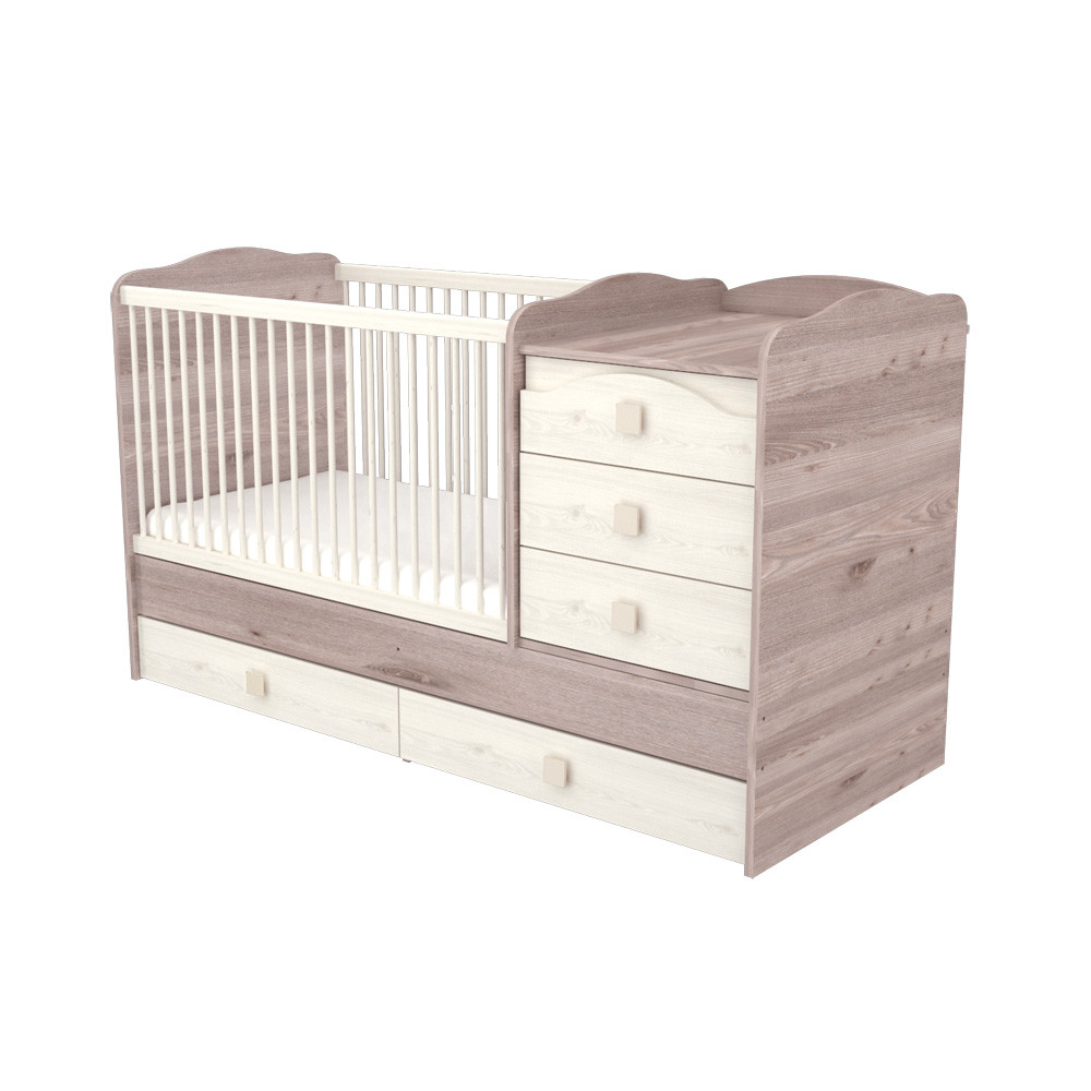 A kiságy fekvõfelülete 3 magassági fokozatban állítható. Míg újszülött-, illetve pár hónapos korában a legfelsõ pozíció kényelmes hozzáférést biztosít az anyukának, addig a gyermek növekedésének megfelelõen a fekvõfelület a késõbbiekben további két fokozattal lejjebb helyezhetõ. Rácsaiból 2 oldalpálca könnyen kivehetõ, ennek köszönhetõen, ha gyermeke már önállóbb, egyedül ki-be járkálhat, így nem szükséges mindig kisegíteni õt onnan. Eközben mégis biztonságosabban alszik, mint egy sima heverõn, hiszen így a rácsoknak köszönhetõen nem gurul le. A pelenkázószekrény jobb és bal oldalra egyaránt felszerelhetõ. A síneken futó ágynemûtartó pedig még praktikusabbá teszi a terméket, segítve a kényelmes tárolást.