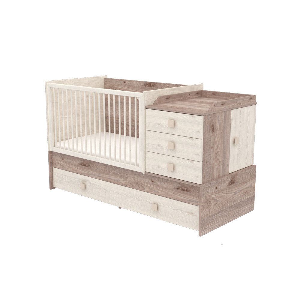 Babaágyból heverõt? Multi Kombi kiságyunkkal ez is lehetséges! Ez az elképesztõen praktikus bútorunk rácsos-babaágyként körülbelül 3 éves korig, junior gyermekágyként pedig körülbelül 12 éves korig használható. A gyerekágy az oldalrácsok és a pelenkázó komód rész eltávolítása után egy ifjúsági heverõvé és egy éjjeli szekrénnyé alakítható. Ha gyermek már elég idõs a heverõ használatához a kiságy átalakítható egy teljes értékû – gyerekággyá, íróasztallá és két különálló szerkénnyé (éjjeli és íróasztal). Az ágy könnyedén átalakítható, amihez nincs szükség pótalkatrészek megvásárlására, ezek a termékkel együtt járnak.