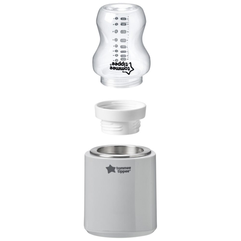 Cumisüveges tápláláskor azonnali és hatékony segítséget jelent.Amikor eljön az etetés ideje, az előre lefejt és lehűtött tejet vagy bébiételt mielőbb fogyasztható állapotba kell hozni a csöppség számára, megkímélve ezzel őt és az édesanyát is a hosszú várakozásból adódó kényelmetlenségektől.Kíméletesen és egyenletesen melegíti fel az ételt a megfelelő hőmérsékletre, anélkül hogy túlmelegítené.Termék jellemzők:•Víz használata nélkül, mindössze 10 perc alatt melegít fel 150 ml anyatejet vagy tápszert testhőmérsékletűre (37°C).•Tökéletes az útközbeni etetéshez: könnyű és kompakt, kényelmesen elfér a hátizsákban vagy pelenkázótáskában•Kíméletes melegítés: a lassú melegítési technológia következtében nincsenek forró pontok•Egyenletesen melegít, miközben megőrzi az anyatejben vagy tápszerben lévő alapvető tápanyagokat•3 hőmérséklet beállítás: 37°C / 40°C / 45°C•USB-ről tölthető: Type-C kábellel működik•Egyetlen feltöltéssel akár hét 150 ml-es vagy négy 260 ml-es palackot is felmelegíthet•Az összes Tommee Tippee cumisüveggel (kivéve az üveg cumisüvegeket) használható, plusz a mellékelt adapterek használatával más cumisüvegmárkákkal is kompatibilis•Könnyen használható: Csak fordítsd a melegítőt fejjel lefelé, majd csatlakoztasd rá az előkészített cumisüveget.Kapcsold be, és válaszd ki a kívánt hőmérsékletet. A melegítő elkezd melegíteni, ha elkészült, hangjelzést ad.