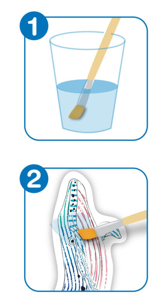 Előny: A Vízzel festő technológia legnagyobb előnye, hogy rendetlenségmentes szórakozást biztosít. Nincs szükség festékre, palettára vagy víztartályra, csak egy ecsetre és egy kis vízre. Ez ideálissá teszi a készletet utazáshoz, nyaraláshoz vagy akár otthoni használatra is. Emellett a festés fejleszti a gyermekek finommotoros készségeit, kézügyességét és kreativitását. A tengeri állatok ihlette minták pedig bevezetik őket a tengeri élővilág csodálatos világába, miközben szórakoztató módon tanulhatnak új dolgokat.