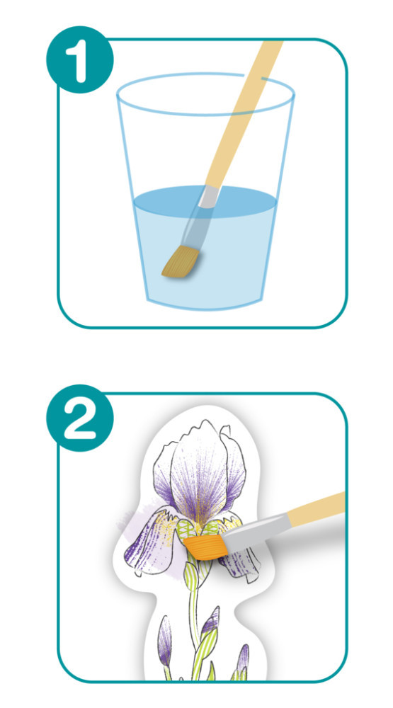 • A készlet tartalma: 12 db előre nyomtatott könyvjelző, ecset, vízzel aktiválható festékek
