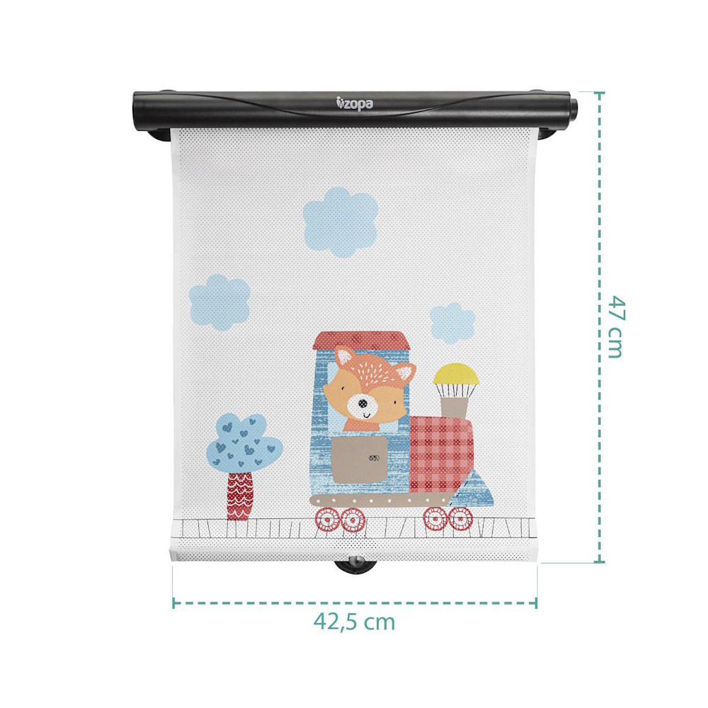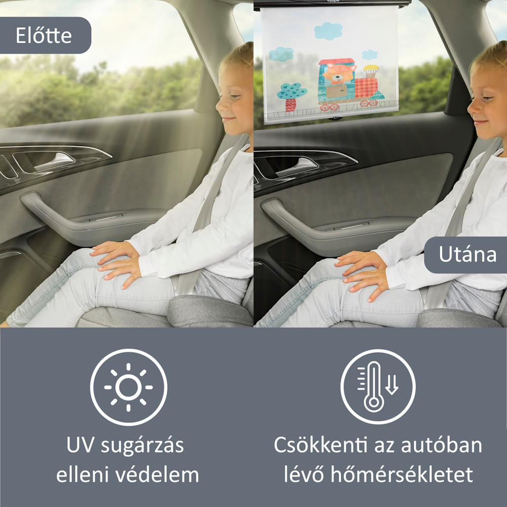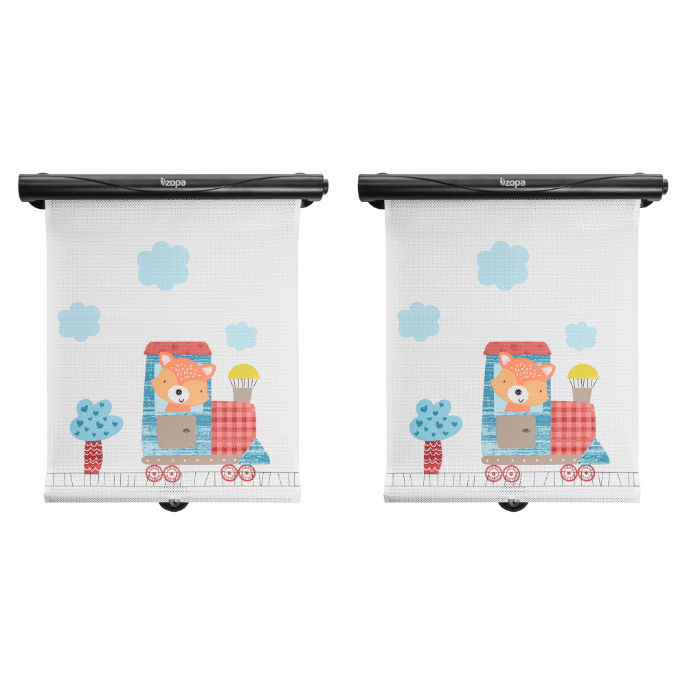 Zopa autós napellenző roló- Nemkívánatos napsugarakkal szembeni védelem- Praktikus tekercselés gombnyomásra- Tapadókorongok biztosítják, hogy a roló a helyén maradjon.- Nem akadályozza a kilátást- A napsugarak 98%-át blokkoljaVédje gyermekét a kellemetlen napfénytől a járműben. Az aranyos róka motívummal díszített napellenző első látásra lebilincseli a gyerekeket.A szett 2 db rolót tartalmaz.