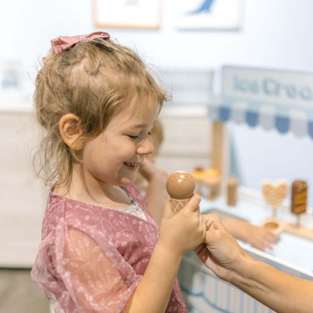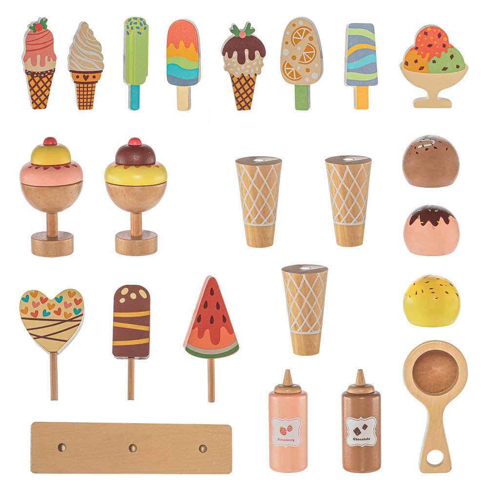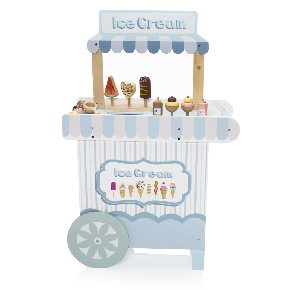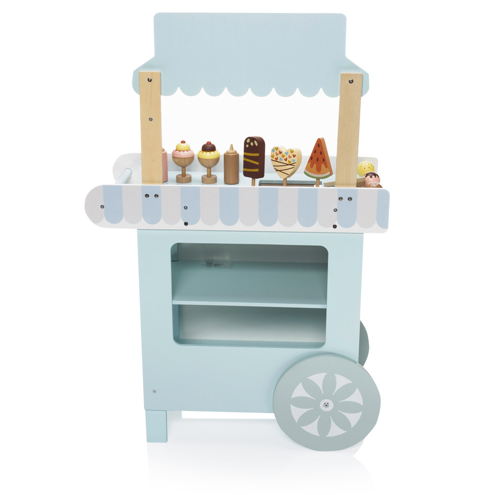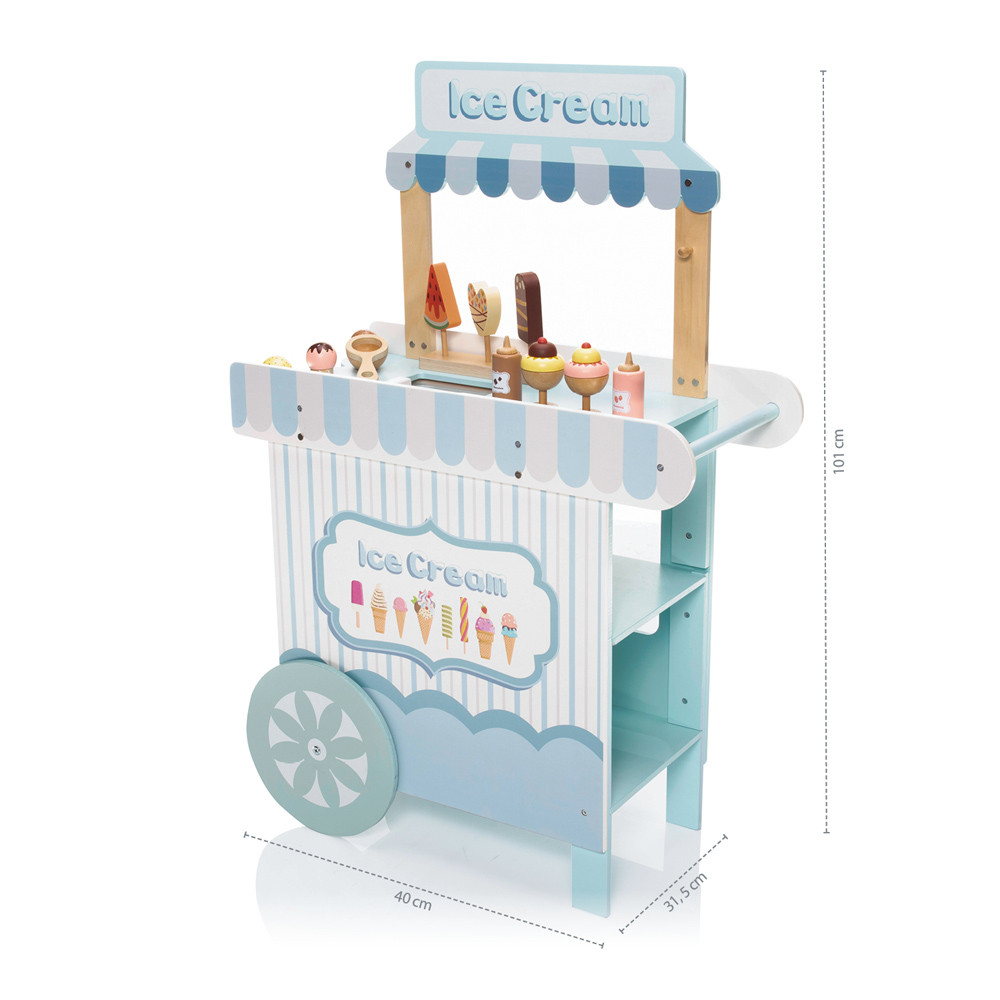Mostantól gyermekei nem csak nyáron élvezhetik a finom fagylaltot. Ezt a kifinomult és színes készletet úgy tervezték, hogy fejleszti a kreativitást, a képzelőerőt és ösztönözze a játékos szerepjátékokat. A gyönyörűen feltuningolt fagylaltozóra emlékeztető kocsi készen áll arra, hogy elinduljon egy utazásra a gyermeki képzelet világába. A gyerekek imádni fogják autentikus kialakítását és egyszerű kezelőszerveit. A gyerekek élvezhetik az igazi fagylaltkészítő szerepét egy szeletelő eszközzel, amellyel tökéletes és ínycsiklandó adagokat készíthetnek kedvenc fagylaltjukból. A készlet tartalmaz egy fagyasztódobozt is, amely játékként is funkcionál, és segít a gyerekeknek úgy tenni, mintha a fagylaltjuk mindig friss és hűvös lenne.Fából készült fagylaltozónk remek módja a gyerekek fantáziájának és kreativitásának fejlesztésének, és bár ellenállhatatlanul szórakoztatja őket, Ön is kényeztetheti magát egy pillanatra önmaga számára. Készüljön fel számtalan órányi szórakoztató és ízletes kalandra kis fagylaltkészítőivel!- 3 éves és annál idősebb gyermekek számára alkalmas- Ösztönzi a képzeletet- Fejleszti a szociális készségeket- Papírpénzt tartalmaz- Kelyhek, tölcsérek, fagylalt gombócok- Fagylalt kanalak- Fagyasztó doboz- Méretek 66,5 × 32 × 101 cm- Strapabíró fából készült- Nem mérgező színek- Összesen 24 tartozék- Lehetővé teszi több gyermek egyidejű játékát- Bátorítja az interakciót és a szocializációt, amikor több gyermek játszik egyszerre- Remek ajándék tipp