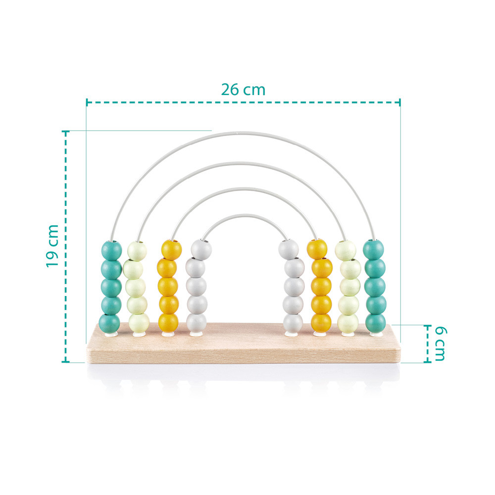 Tanulj meg számolni a világ legősibb számolójátékával! A színes Fa abakusz készlet egy fa kerettel és drótokkal készült játék, ami az összeadást és a kivonást is megtanítja. A gyöngyöket jobbra-balra tudod húzni, minden dróton 10 golyót találsz, amik segítenek a számolás elsajátításában.- Tartós fából és vízbázisú festékekből készült
