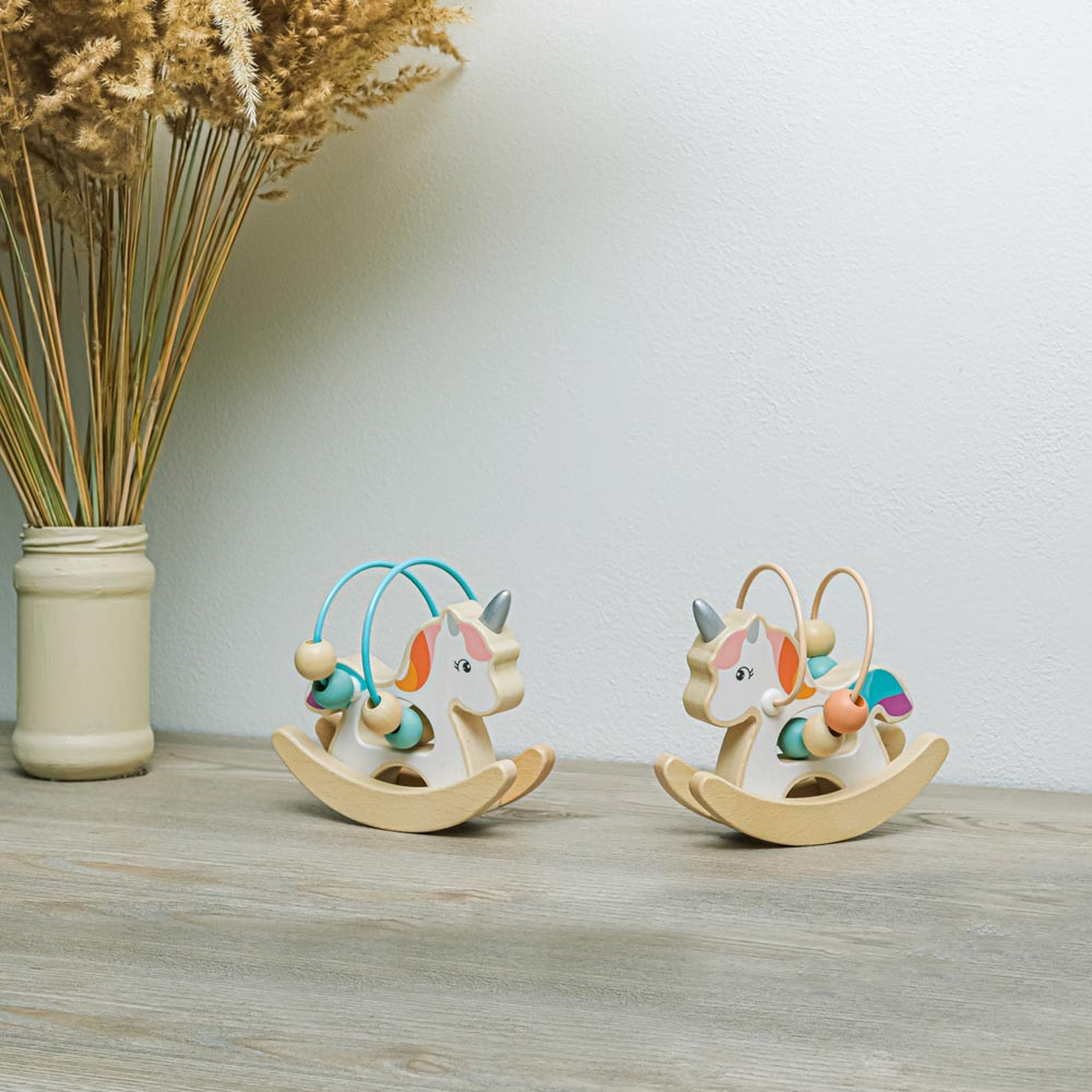 Interaktív fajáték egyszarvúval, amely órákon át szórakoztatja a gyermeket.Kompakt méretének köszönhetően az unikornis tökéletesen illeszkedik a kisgyermekek kezébe.Az egyszarvúval egy kört játszhatsz, de ezen kívül van egy interaktív rész is. Ennek köszönhetően a játék fejleszti a koordinációt, az alapvető motoros készségeket, a kreativitást és nem utolsósorban a logikát.A tevékenységek kiváló minőségű tartós fából és vízbázisú festékekből készülnek. - Órákig tartó szórakozás- Unikornis design- Kompakt méretek- Interaktív rész- Fejleszti a motoros készségeket, a koordinációt és a logikát- Tartós fából és vízbázisú festékekből készült