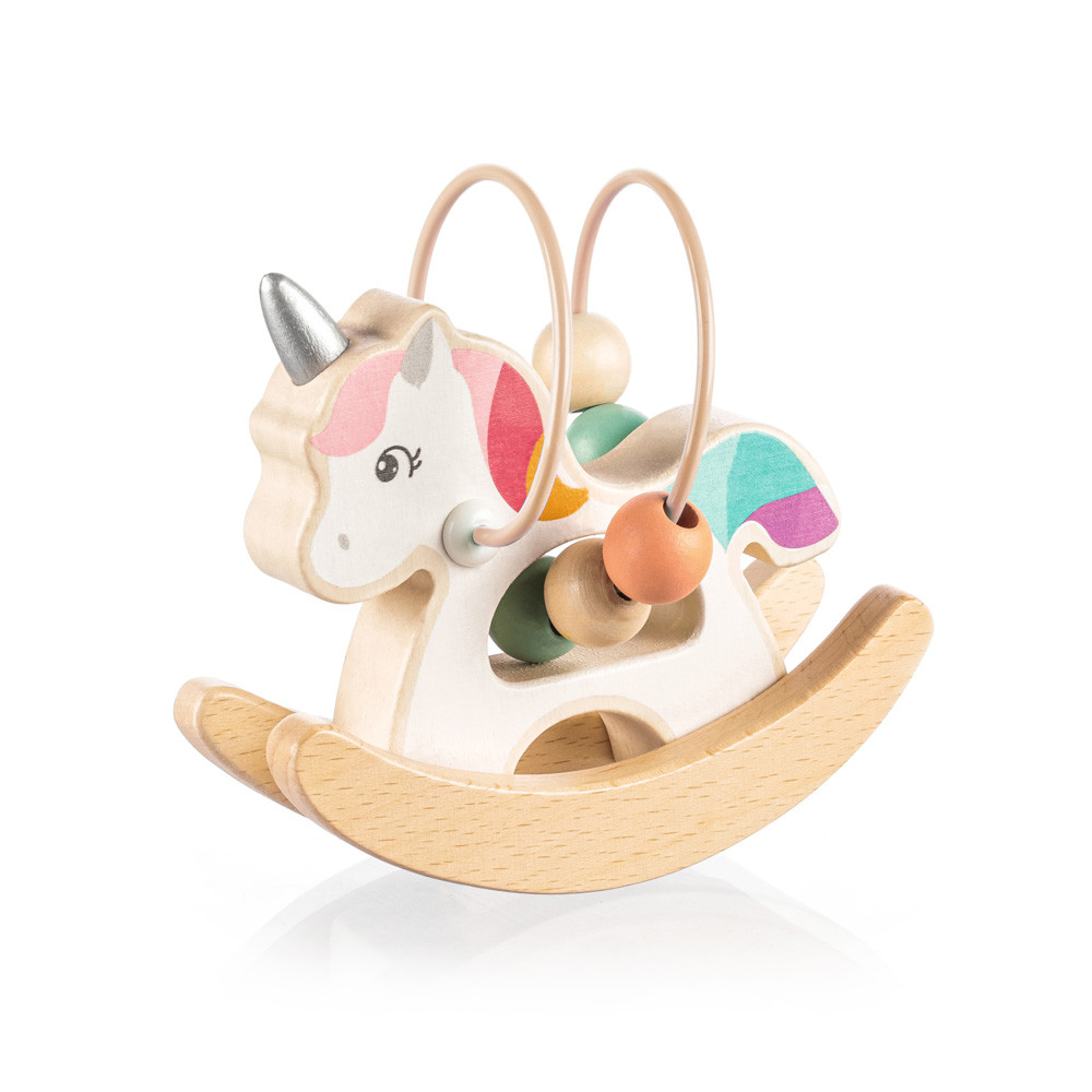 Interaktív fajáték egyszarvúval, amely órákon át szórakoztatja a gyermeket.Kompakt méretének köszönhetően az unikornis tökéletesen illeszkedik a kisgyermekek kezébe.Az egyszarvúval egy kört játszhatsz, de ezen kívül van egy interaktív rész is. Ennek köszönhetően a játék fejleszti a koordinációt, az alapvető motoros készségeket, a kreativitást és nem utolsósorban a logikát.A tevékenységek kiváló minőségű tartós fából és vízbázisú festékekből készülnek. - Órákig tartó szórakozás- Unikornis design- Kompakt méretek- Interaktív rész- Fejleszti a motoros készségeket, a koordinációt és a logikát- Tartós fából és vízbázisú festékekből készült