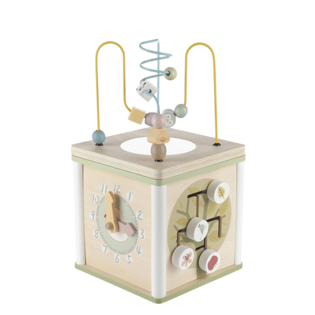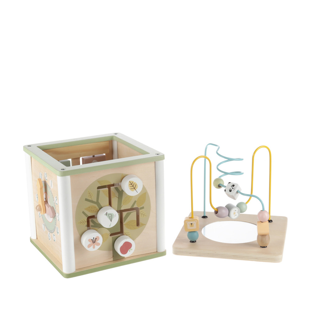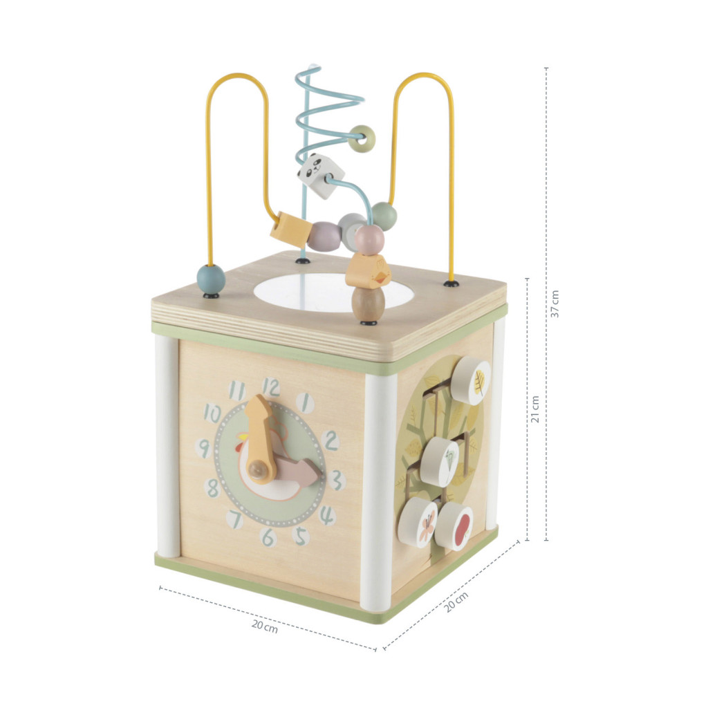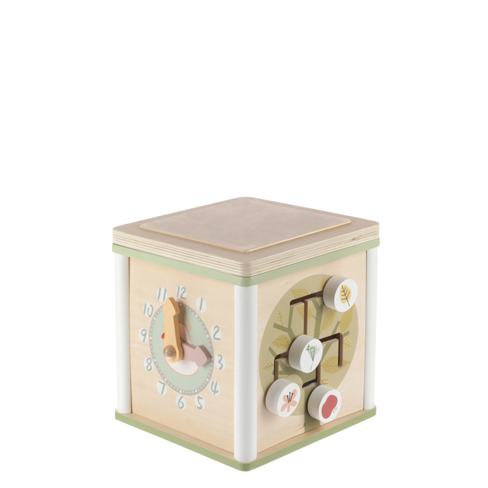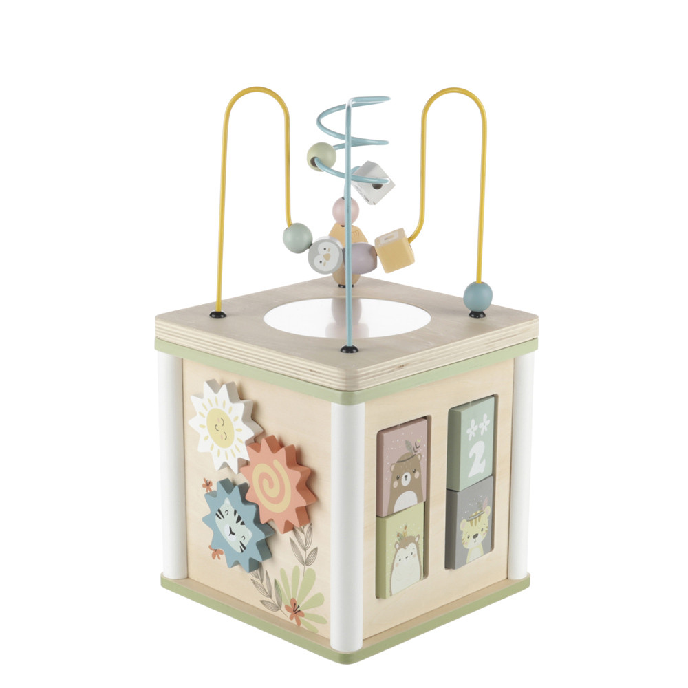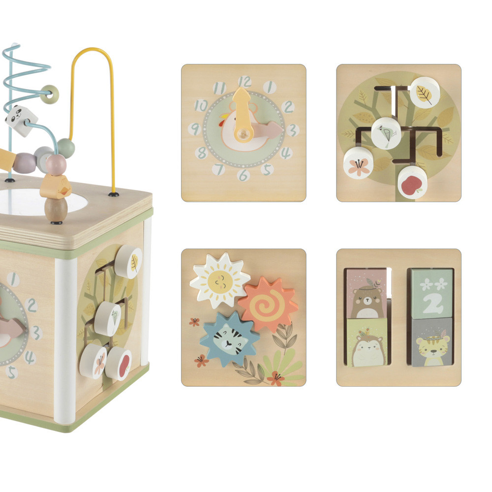 Egy aranyos kocka, amely rejtvényeket rejt. A kocka oldalain forgó faformák vannak, különböző motívumokkal. A játék fejleszti a koordinációt, a térbeli képzelőerőt és a kézügyességet. A golyók és formák mozgatása megtaníthatja a gyerekeknek az első számolásra és színfelismerésre. A tevékenységek minőségi fából és vízbázisú festékekből készülnek. • Egy kocka, benne rejtvényekkel• Kompakt méretek• Hosszú ideig szórakoztatja Önt• Fejleszti a motoros készségeket, a koordinációt és a térbeli képzelőerőt• Tartós fából és vízbázisú festékekből készült