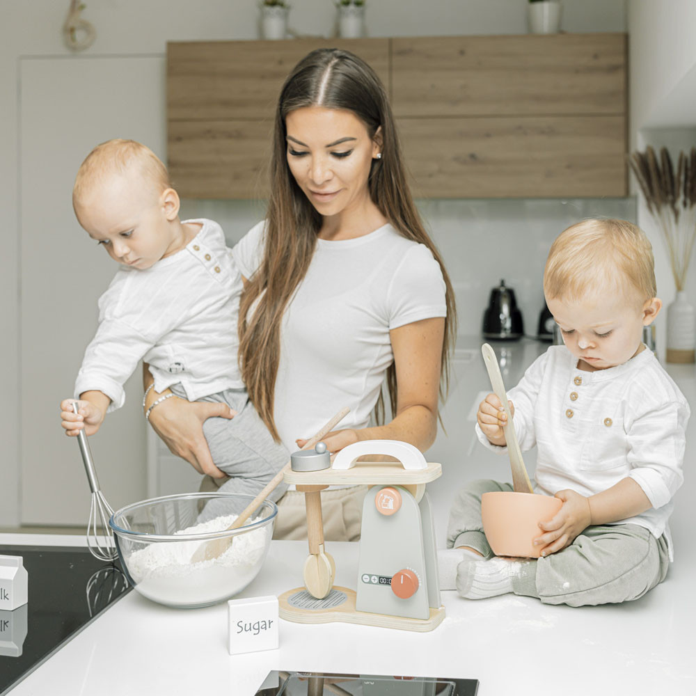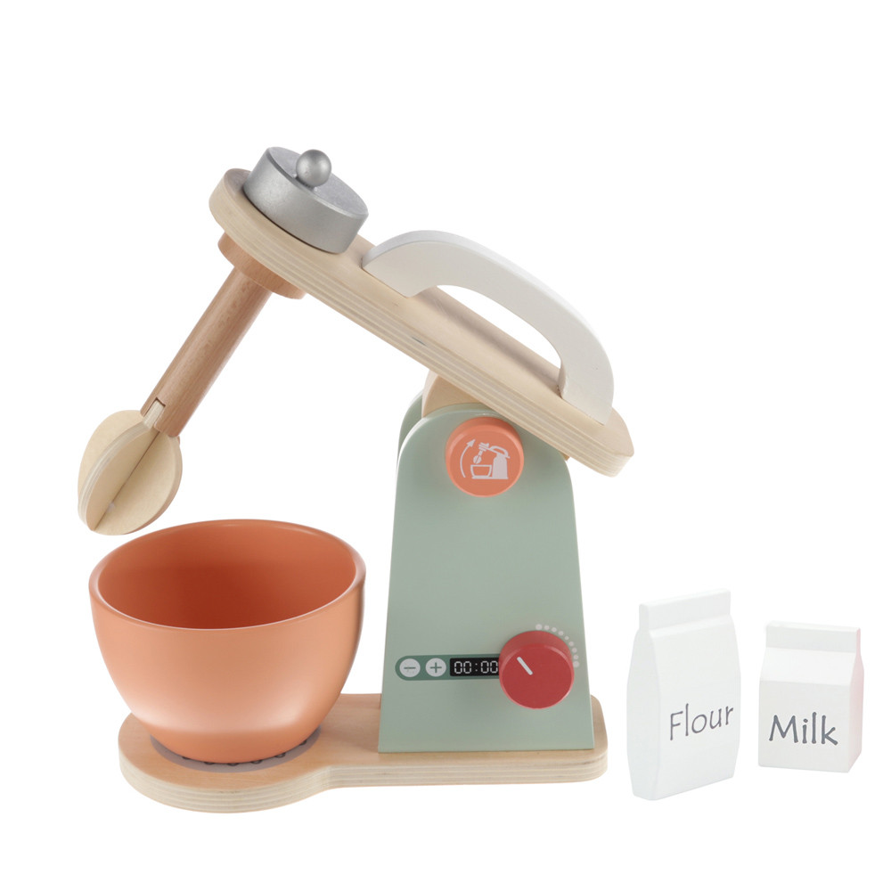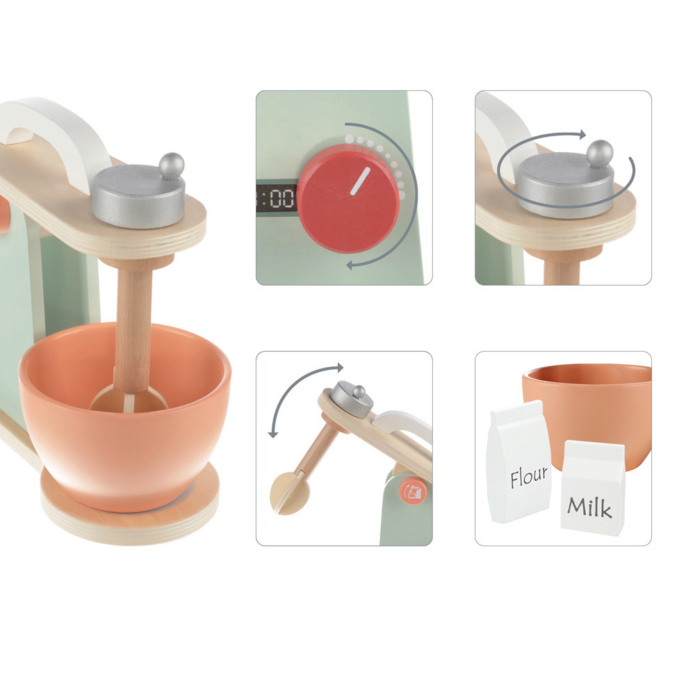 Kifinomult robotgép minden gyermek számára, aki a legjobb péksüteményeket szeretné sütni. A robotgépnek több gombja van, amelyek forgathatók vagy megnyomhatók. Tartalmaz egy tálat, amelyben a robotgép összekeveri a tésztát. A játék kiváló minőségű fából és vízbázisú festékekből készült.- Keverő kialakítás- Kompakt méretek- Fejleszti a képzelőerőt és a finom-motorikát- Tartós fából és vízbázisú festékekből készült- Mérete: kb.: 22 x 22 x 11cm