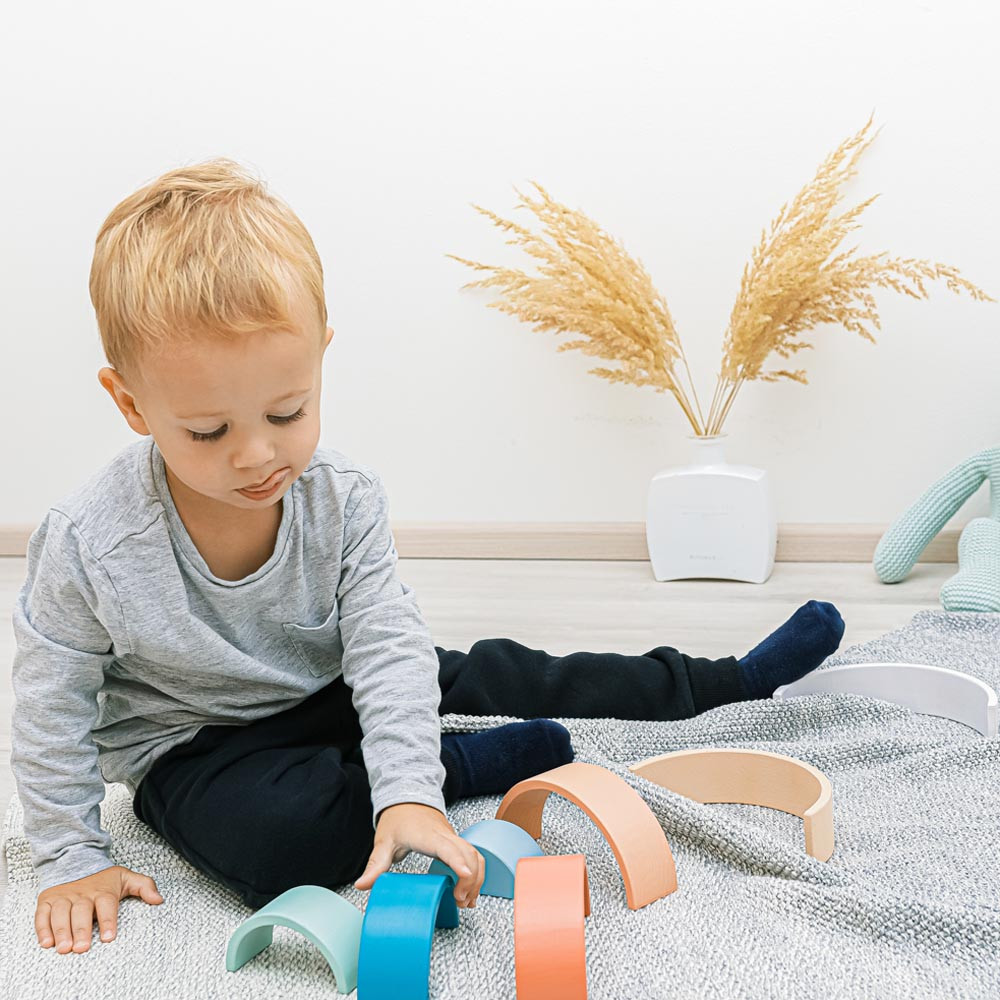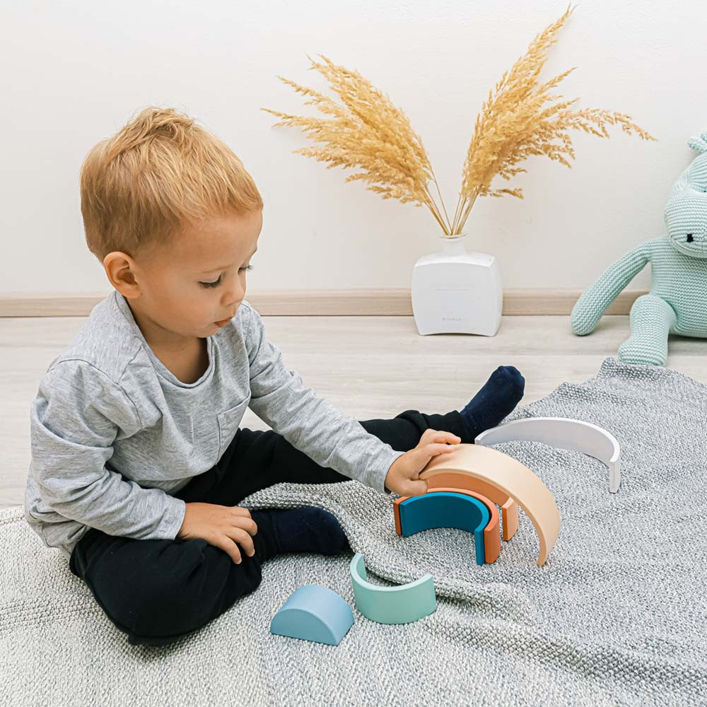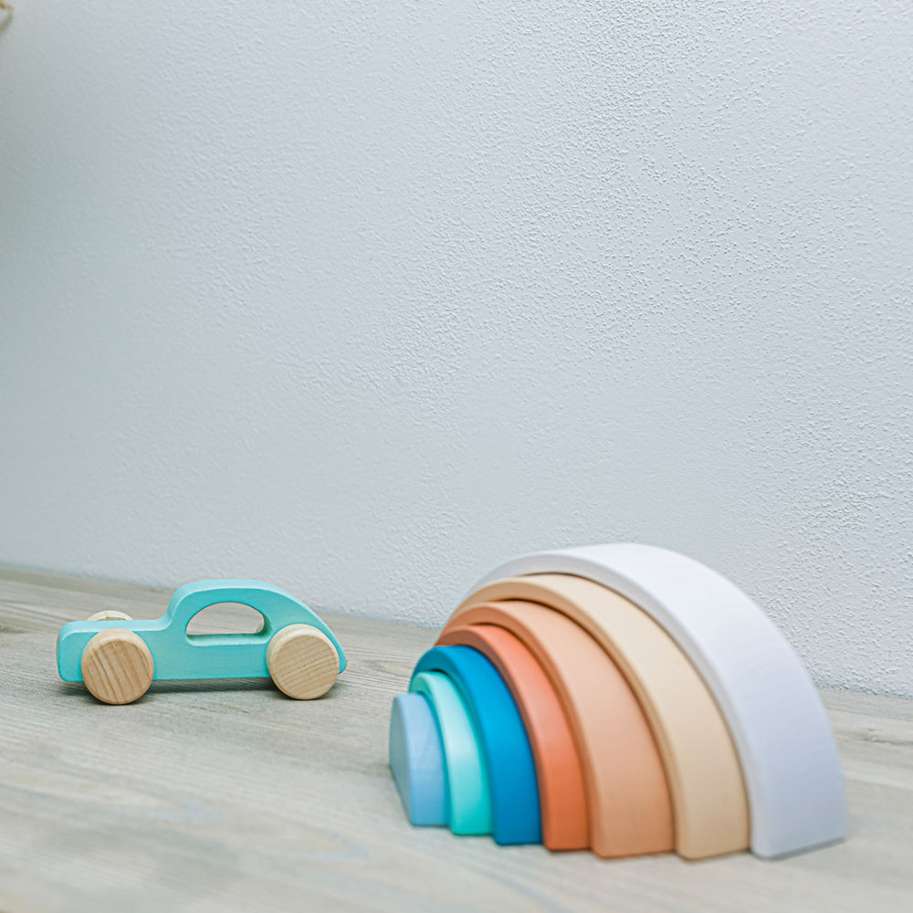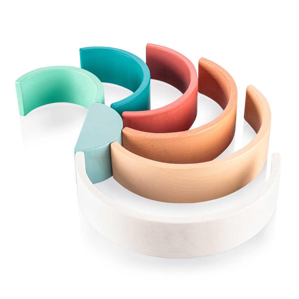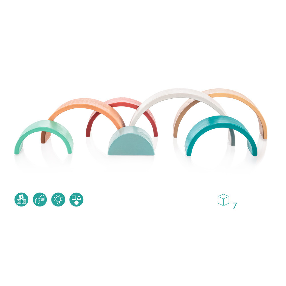 Az aranyos szivárvány formájú és színű játék nagyszerű segítőtárs a gyerekek motorikus fejlődéséhez, képzelőerejének és kreativitásának fejlesztéséhez. A kirakós játékból különféle formákat lehet létrehozni. A készlet 7 színes, minőségi bükkfából készült darabot tartalmaz.- Fejleszti a gyermekek motorikus készségeit és képzelőerejét- 18 hónapos kortól ajánlott- Korlátlan összecsukási mód- 7 színes darab- Minőségi bükkfából és vízbázisú festékekből- Mérete: kb.: 17 x 8,5 x 4cm