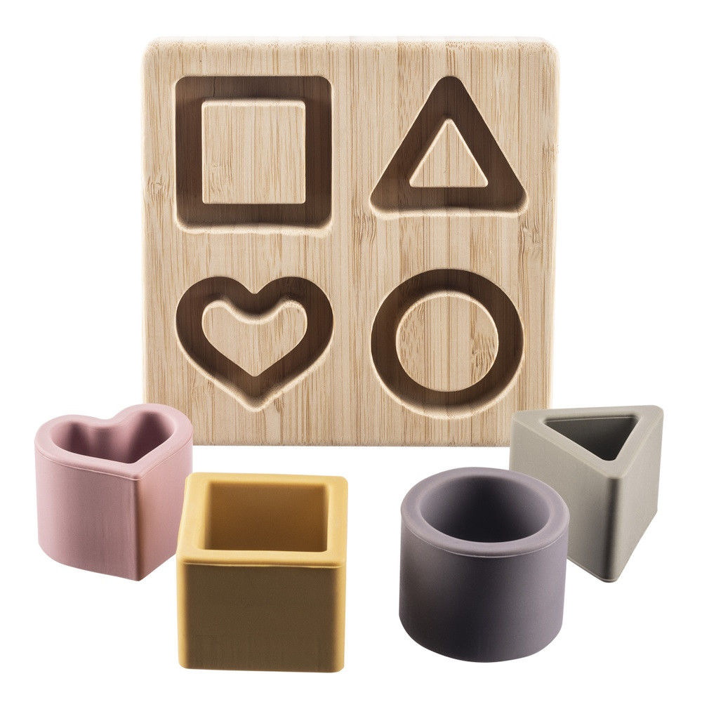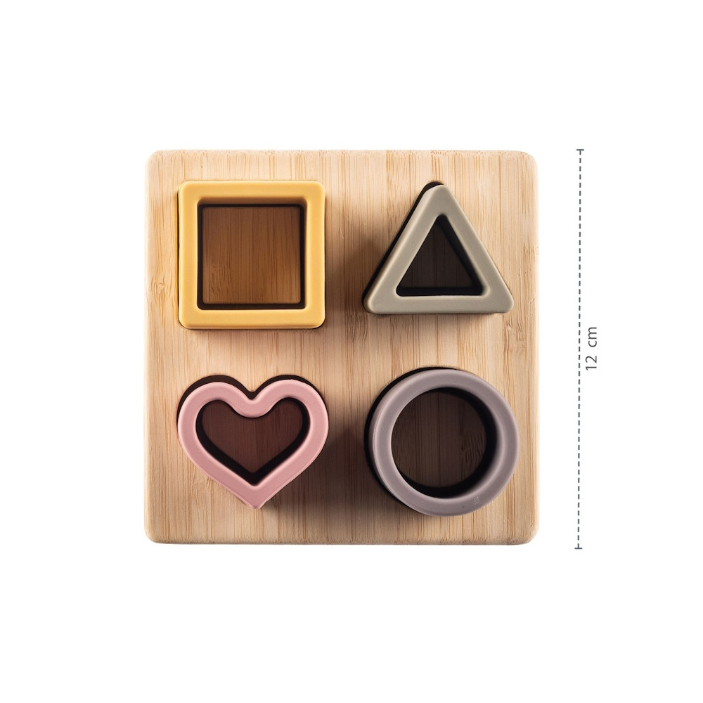 Élelmiszeripari minőségű szilikon formák, bambusz tálca, 4 féle forma, Montessori játék, finommotorika fejlesztés, szem-kéz koordináció fejlesztés, színeket tanít, gyerekek első rejtvénye - ez a Zopa szilikon és bambusz formaberakó.Az első rejtvény gyerekeknekEz a szórakoztató kirakós játék sokáig foglalkoztatja a gyermeket, emellett a játék során megtanul számolni, támogatja a formák és színek felismerését, térérzékelést, szem-kéz koordinációt, a finommotorikát, a logikus és kritikus gondolkodást.Montessori játék a kicsiknekA kocka, háromszög, kerek és szív alakú szilikon formák élelmiszeripari minőségű szilikonból készülnek, amely nem mérgező és törésálló. Kisgyermekek számára a szilikon természetesebb, mint a műanyag vagy a fém. Nagyon kellemes a feszült és érzékeny fogíny harapására és stimulálására fogzás közben.TIPP: Egy szilikon és bambusz formaberakó tökéletes ajándék babalátogatásra.• Puha, rugalmas, erős anyag• Könnyű fogás• 4 szilikon rejtvény• Finommotorika fejlesztése• A szem-kéz koordináció fejlesztése• Montessori játék• Praktikus ajándék• Könnyű tisztítás• Nem szívja fel a szagokat• 100% élelmiszer minőségű szilikon (szilikon alkatrészek)• Nem mérgező• BPA mentes• PVC mentes• Forrásban lévő vízben főzhető/sterilizálható (csak szilikon alkatrészek)12x12 cm