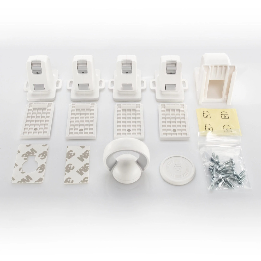 Megakadályozza a szekrények kinyitását, mágneses kulccsal nyitható, praktikus zár, egyszerű felszerelés - ez egy mágneses zár szekrényekhez és fiókokhoz.A gyermekek biztonsága érdekébenA mágneses záródás megakadályozza a szekrények és fiókok kinyitását. Belül rejtve van, és diszkréten néz ki. A zár feloldásához a mágneses kulcsot kell használni. A praktikus biztonsági berendezés lehetővé teszi a zár egy bizonyos időre történő kikapcsolását és újraaktiválását. A záróelemek könnyen felszerelhetők ragasztószalaggal vagy csavarozással.A csomag 4db zárszettet tartalmaz, és sablont a felszereléshezhez, mágneskulcsot, kiváló minőségű ragasztócsíkokat, csavarkészletet és infomatricákat.• Univerzálisan használható minden típusú szekrényhez és fiókhoz• Belül rejtett zár• Mágneses kulcs a feloldáshoz• Könnyű felszerelés ragasztócsíkkal vagy csavarokkal• Nem tartalmaz BPA-t vagy ftalátokat