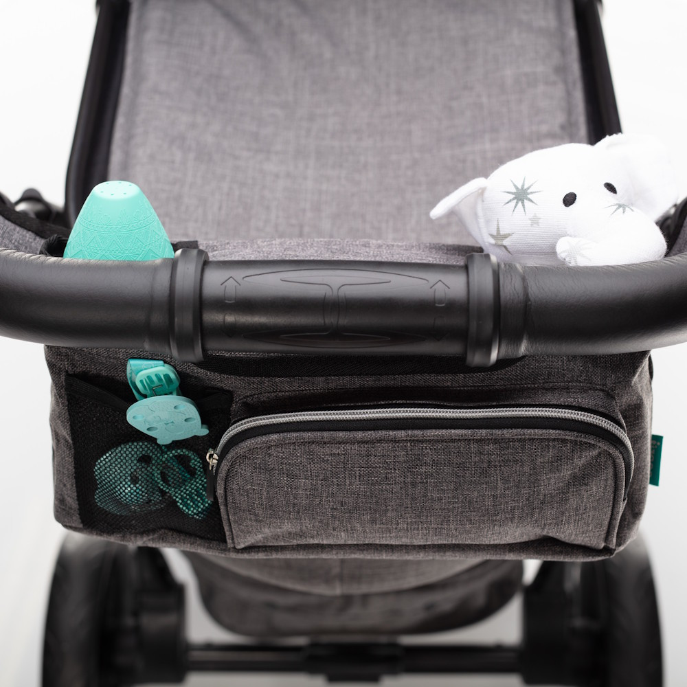 A nélkülözhetetlen apróságok tárolására szolgáló, jól áttekinthető, praktikus és trendi rendező segít minden apróságot a helyén tárolni. Három részből áll: egy nagyobb cipzáras zsebből és a két oldalán egy-egy szigetelt palacktartó részből. A rendező légáteresztő, könnyen tisztítható anyagból készült.- Lélegző nylon anyagból készült- Univerzális minden babakocsi típushoz- Jól szigetelt részekkel az üvegek számára, valamint egy cipzáras zsebbel