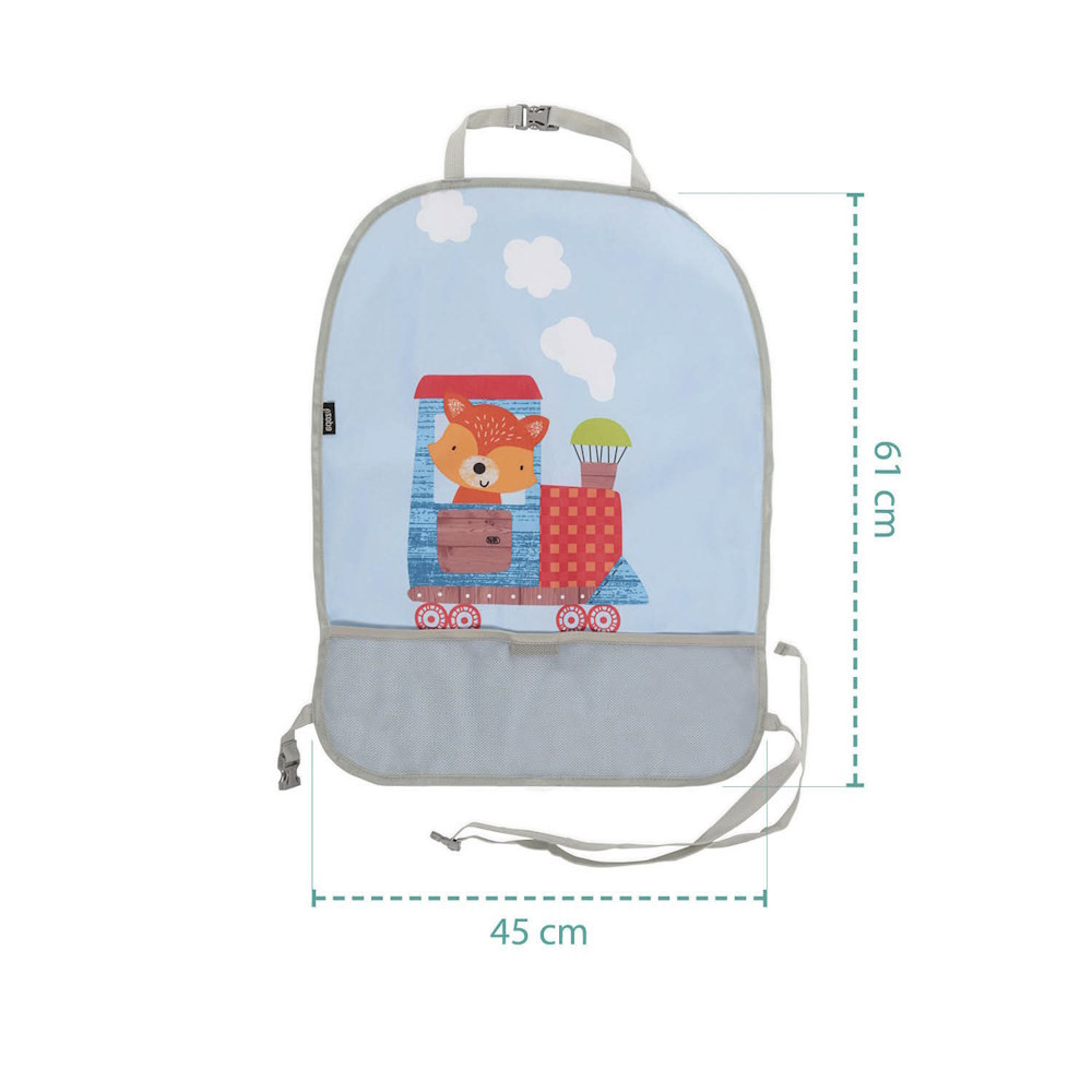 Zopa ülésvédő háttmlára - róka mintás- Ülésvédő róka motívummal- Széles tároló zseb- Minőségi tartós szövetEgyszerűen rögzíthető az első ülés háttámlájára, és védelmet nyújt a nemkívánt lábnyomok ellen.