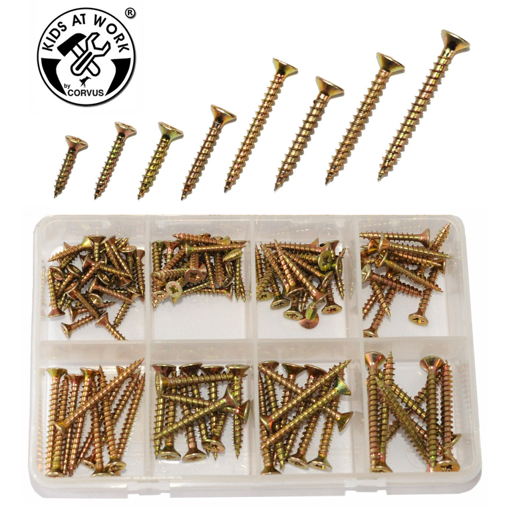 Forgács-, OSB, vagy pozdorja lapokhoz ajánlott. A csomag 144 db csavart tartalmaz egy praktikus szortírozó dobozban.