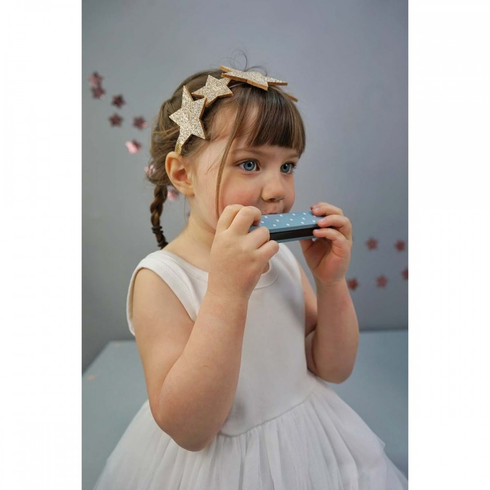 Kék, fából készült, pöttyökkel díszített szájharmónika a Jabadabado márkától!