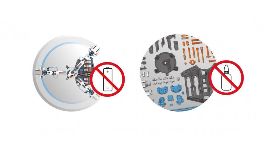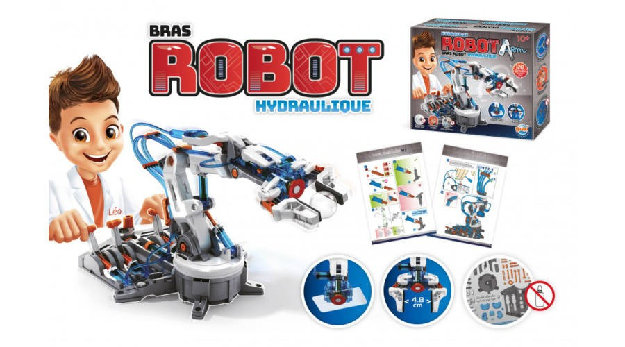 Tökéletesen bemutatja a hidraulikus rendszerek működését, mivel ugyanazokon az elveken alapszik, mint a valódi gépek. Összeszerelés után tölts vizet a hidraulikus rendszerbe és irányítsd a kart 6 fokozatban! A segítségével fel tudsz emelni kisebb tárgyakat függőlegesen, utána pedig el tudod őket forgatni 90°-ban.