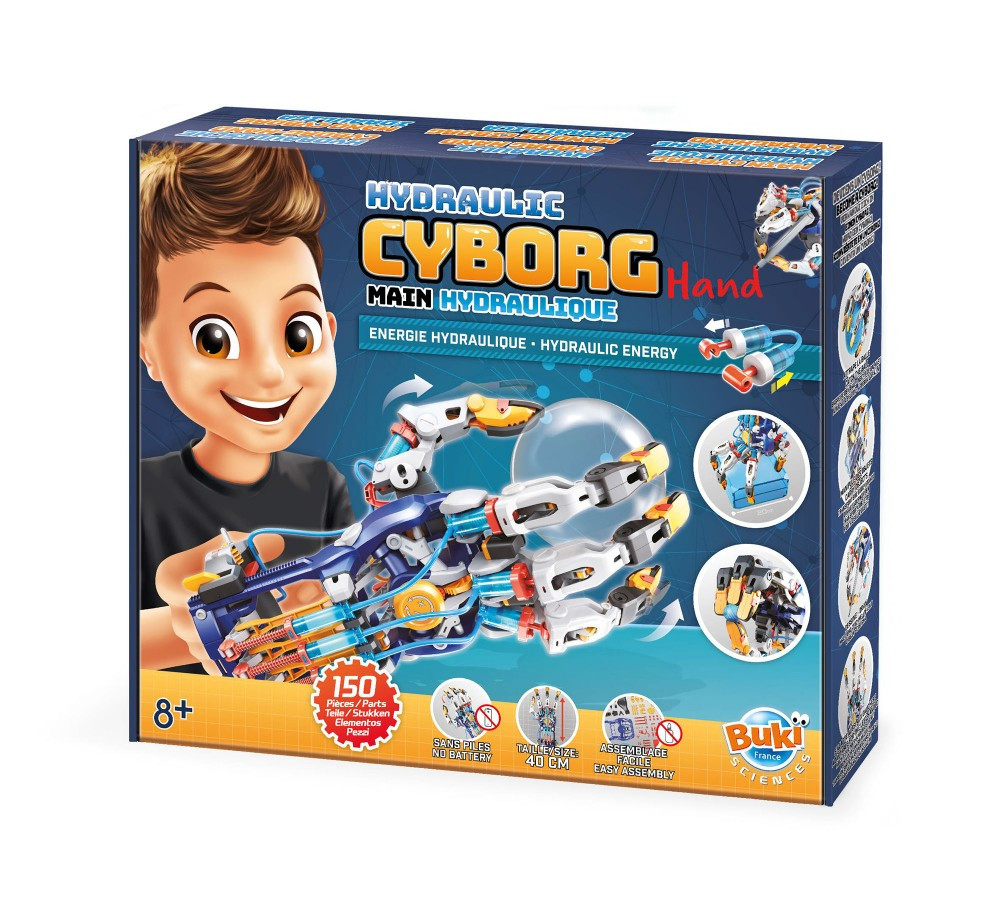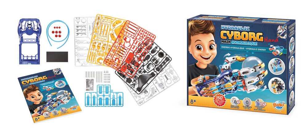 Készíts egy csuklós robotkezet az alkatrészek összeszerelésével. Adj vizet a rendszerhez, és az ujjhegyek mozgathatóvá válnak! A kéz használható különböző tárgyak mozgatására, mint a golyók vagy palackok. A játék bal- és jobbkezes használatra egyaránt adaptálható.
