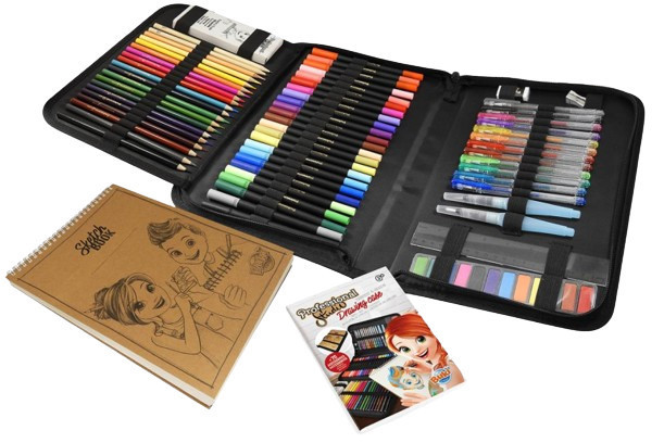 Egy fantasztikus készlet, a rajzoláshoz szükséges minden eszközzel megtöltve! Praktikus, mivel a rajzfüzet a tolltartóhoz rögzíthető, így megfelelő alátétként is szolgál a rajzoláshoz.