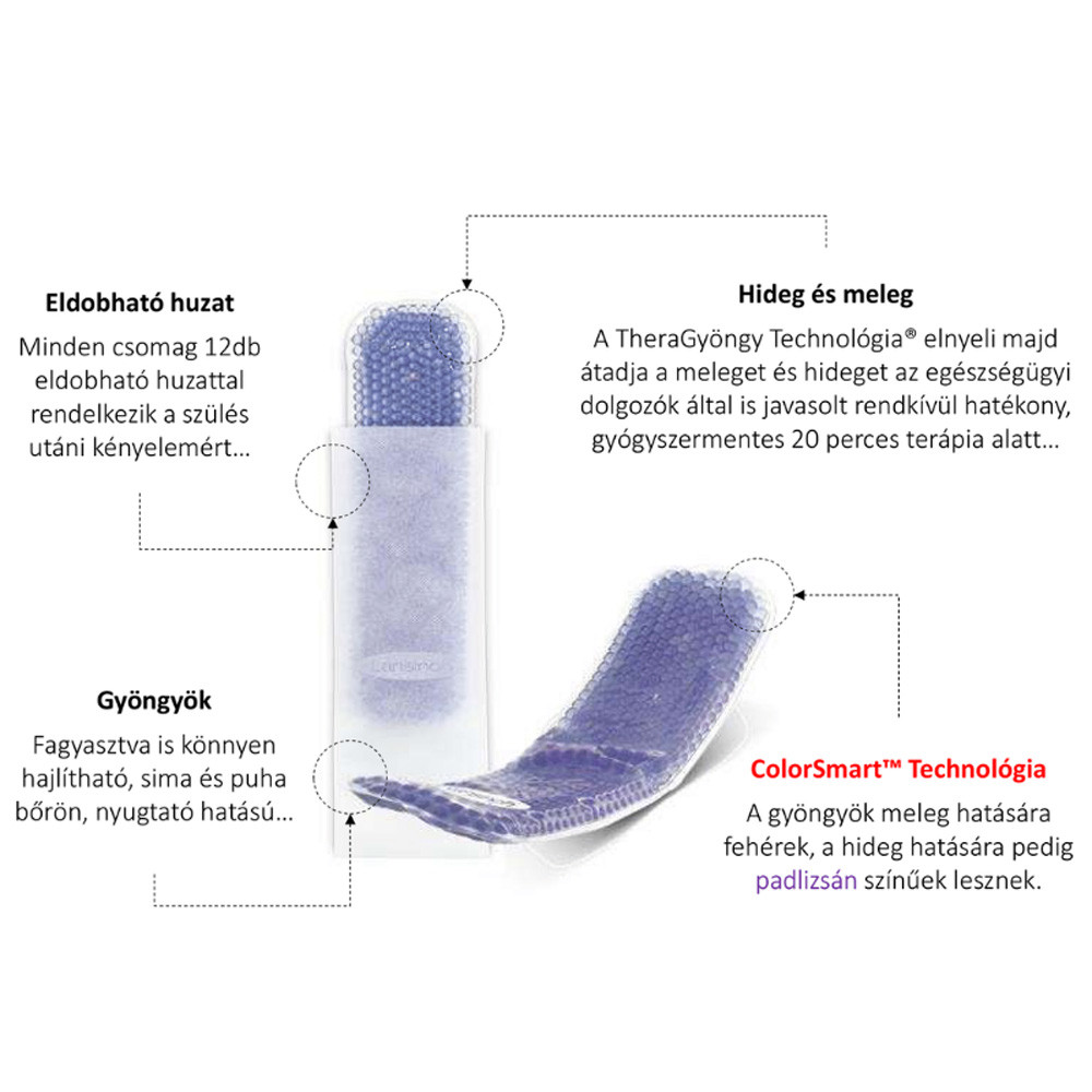 Használható hidegen vagy melegen a szülés utáni fájdalom enyhítésére!Hűsítő fájdalomcsillapítás gátsérülés, gátmetszés, aranyér és a császármetszés kellemetlenségei miattBiztonságos használat szülés után és szoptatás alatt isMeleg nyugtató enyhülés a méh-összehúzódások által okozott kellemetlenségekre, amelyeket általában a szülés után tapasztalnak az anyukák Class I orvostechnikai eszköz besorolású (CE jel) Minden párna 22,9x6cm, hasonlóan, mint a maxi betét, azért hogy együtt lehessen használni. A párnák méretét úgy tervezték, hogy a legtöbb mikrohullámú készülékben melegíteni lehessen. A párnák külső borítása PVC-ből készült, a huzatok pedig PP nemszőtt vízzáró anyagból.