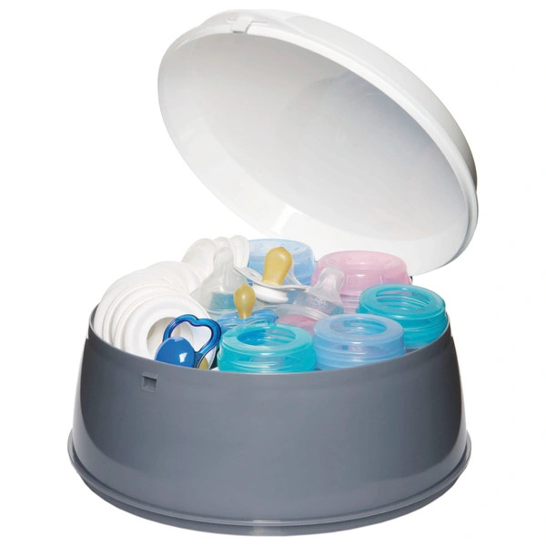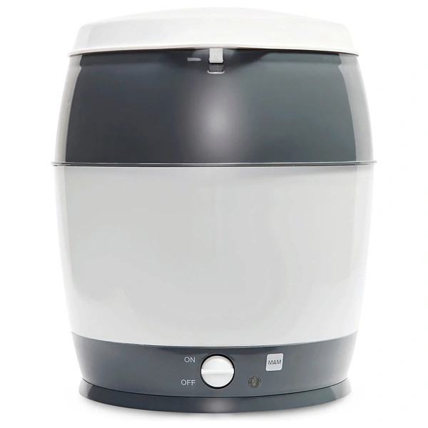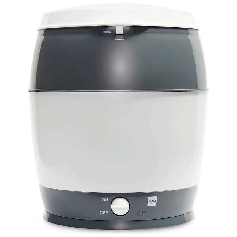 Mostantól a cumisüvegek és egyéb babaholmik higiénikusan tiszták és sterilek lesznek a MAM sterilizálónak köszönhetően. A készülék feltűnő szürke dizájnja biztosan lenyűgöző. Méretüktől függően akár kilenc cumisüveg is sterilizálható egyszerre. A könnyű kivétel érdekében egy praktikus megfogó is található benne. Gumi lábak, jelzőfény és billenőkapcsoló biztosítják a kényelmes és egyszerű kezelést. A belső kosár könnyen eltávolítható.