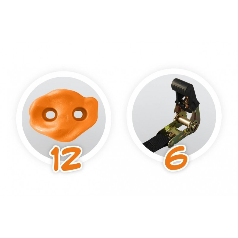 A csomagban található 6 heveder és 12 kapaszkodó, melyeket gyorsan és egyszerűen felszerelhetsz egy fa köré, hogy kalandos útvonalakat hozz létre gyermeked számára.
