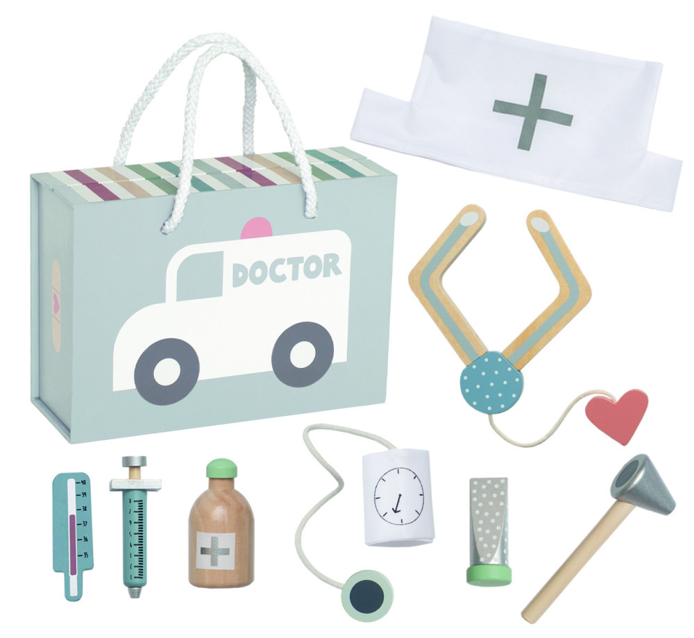 • Praktikus kistáskában tárolható és szállítható: A készlethez tartozó kistáskának köszönhetően a játék könnyen tárolható és szállítható, így akár utazásra is magukkal vihetik a kis doktorok.