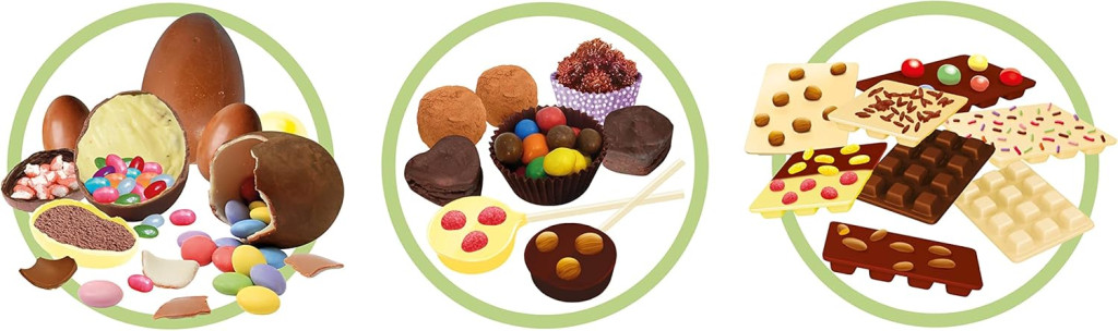 • Fejleszti a konyhai készségeket: A szett használata során a gyerekek megismerkednek a csokoládé olvasztásának, formázásának és díszítésének alapjaival.