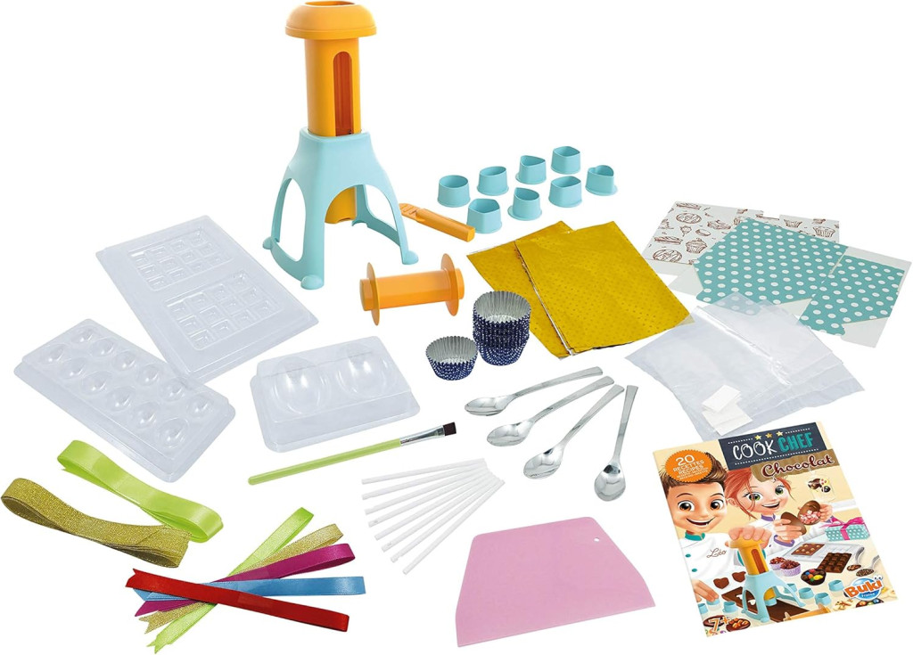 • Különböző formák és eszközök: A szettben található formák és eszközök segítségével a gyerekek változatos és egyedi pralinékat készíthetnek.