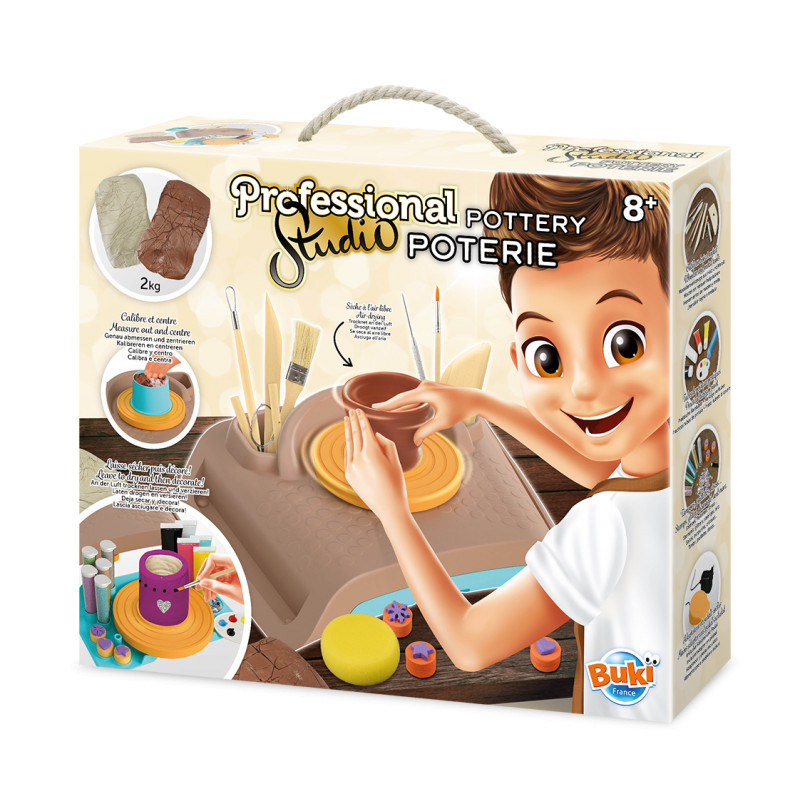 BUKI Professzionális Stúdió, agyag kerámiakészítő szett, korongozó készlet, EDU-BUKI5426, gyermek kerámia készlet, kreatív játék, kézműves szett gyerekeknek, agyagozás otthon, BUKI játékok, finommotoros készség fejlesztés, gyerek ajándék, BUKI kerámia stúdió, agyag szett, gyerekeknek, minidreams.hu