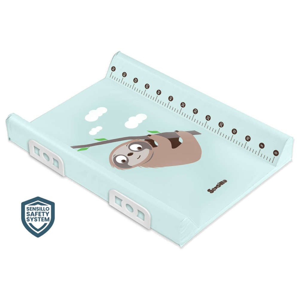 A vidám nyomatokkal ellátott Sensillo párnázott pelenkázólap a legkisebbek kényelmes gondozásának gondolatával készült. A készletben található lábak lehetõvé teszik a biztonságos és stabil felszerelést közvetlenül egy 60 cm széles kiságyra. A pelenkázólap komódra vagy más stabil felületre is felszerelhetõ. A pelenkázóasztalt az innovatív Sensillo Safety System jellemzi, amely a kiegészítõ oldalerõsítéseknek köszönhetõen megakadályozza a gyermek kiesését. A gyártás során a legjobb minõségû anyagokat használtuk, amelyek maximális biztonságot és kényelmet biztosítanak. A Sensillo pelenkázólap teljesen biztonságos a gyermek egészségére nézve – nem tartalmaz ftalátokat, nehézfémeket és egyéb káros anyagokat.
