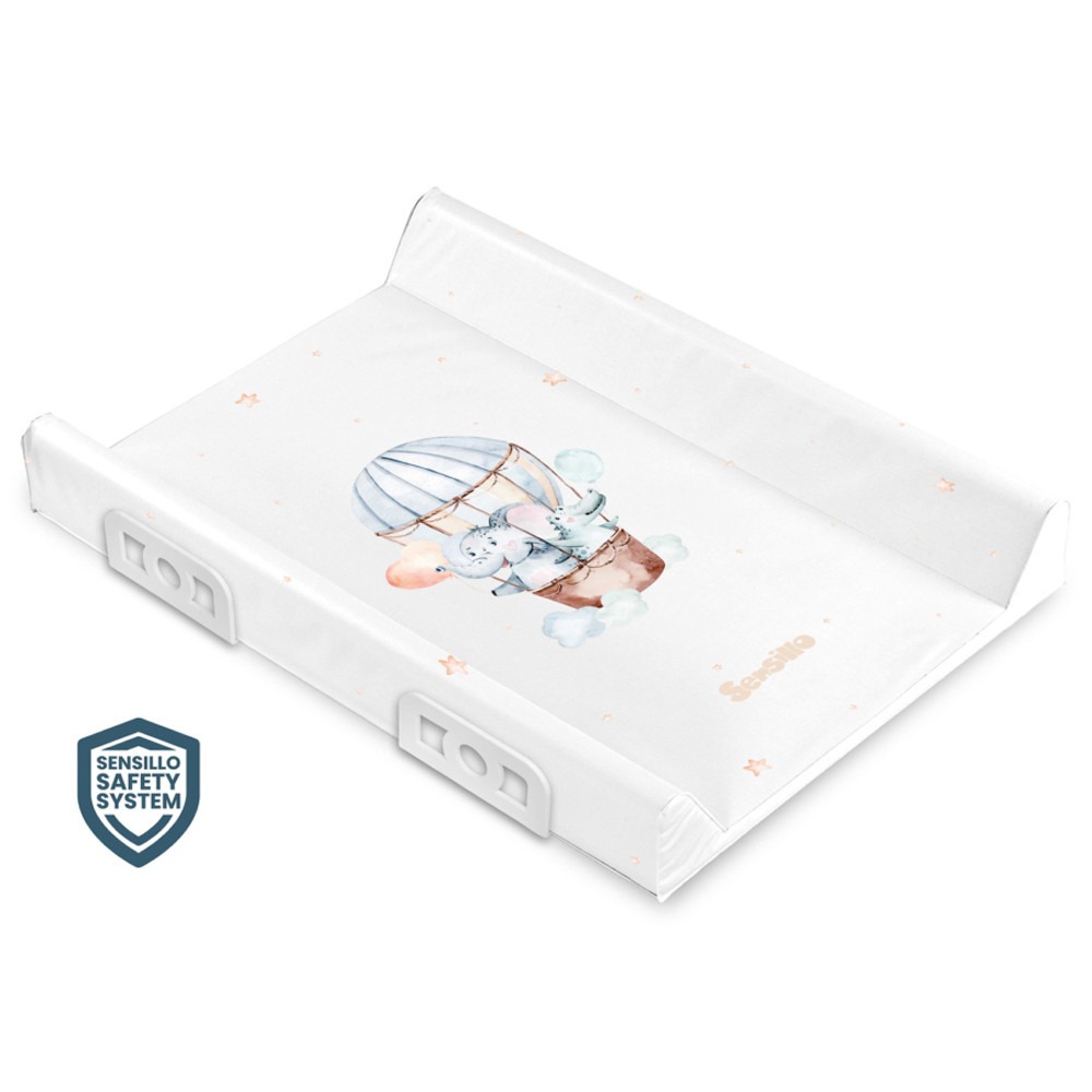 A vidám nyomatokkal ellátott Sensillo párnázott pelenkázólap a legkisebbek kényelmes gondozásának gondolatával készült. A készletben található lábak lehetõvé teszik a biztonságos és stabil felszerelést közvetlenül egy 60 cm széles kiságyra. A pelenkázólap komódra vagy más stabil felületre is felszerelhetõ. A pelenkázóasztalt az innovatív Sensillo Safety System jellemzi, amely a kiegészítõ oldalerõsítéseknek köszönhetõen megakadályozza a gyermek kiesését. A gyártás során a legjobb minõségû anyagokat használtuk, amelyek maximális biztonságot és kényelmet biztosítanak. A Sensillo pelenkázólap teljesen biztonságos a gyermek egészségére nézve – nem tartalmaz ftalátokat, nehézfémeket és egyéb káros anyagokat.