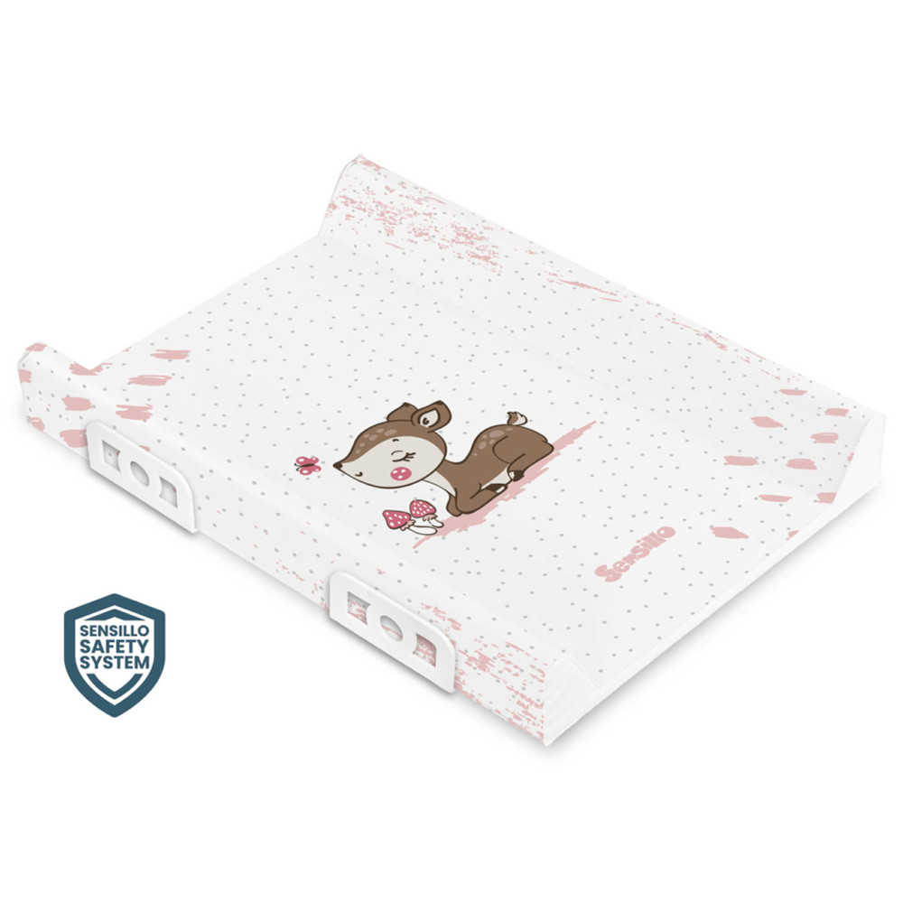 A vidám nyomatokkal ellátott Sensillo párnázott pelenkázólap a legkisebbek kényelmes gondozásának gondolatával készült. A készletben található lábak lehetõvé teszik a biztonságos és stabil felszerelést közvetlenül egy 60 cm széles kiságyra. A pelenkázólap komódra vagy más stabil felületre is felszerelhetõ. A pelenkázóasztalt az innovatív Sensillo Safety System jellemzi, amely a kiegészítõ oldalerõsítéseknek köszönhetõen megakadályozza a gyermek kiesését. A gyártás során a legjobb minõségû anyagokat használtuk, amelyek maximális biztonságot és kényelmet biztosítanak. A Sensillo pelenkázólap teljesen biztonságos a gyermek egészségére nézve – nem tartalmaz ftalátokat, nehézfémeket és egyéb káros anyagokat.