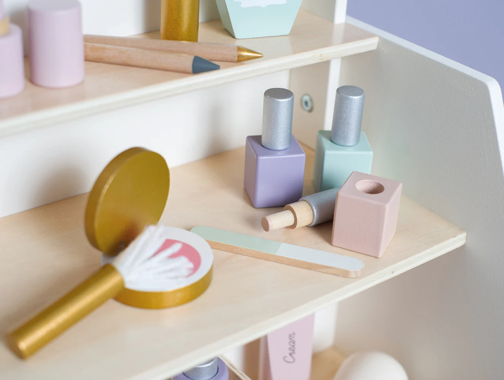 • Luxus és elegancia: A szépségszalon minden részlete gondosan kidolgozott, hogy a legkisebbek is megtapasztalhassák a szépségápolás örömét. A tükör, a különböző sminkeszközök és a stílusos bútorok egy igazi divatszalon hangulatát teremtik meg.