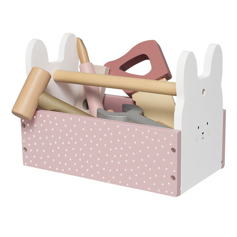 Ez a szép szerszámosláda a népszerű nyuszi figurával tökéletes ajándék lesz a kis mesterek számára. A játék 15 fából készült tartozékkal érkezik, amelyekre egy igazi ácsnak szüksége van ahhoz, hogy építeni és faragni tudjon. Engedd szabadjára a fantáziádat és a kreativitásodat! A szerszámosláda rózsaszín és világos színekben pompázik, szerepjátékra inspirál és segít fejleszteni a finommotoros képességet, kreativitását és képzelőerőt.